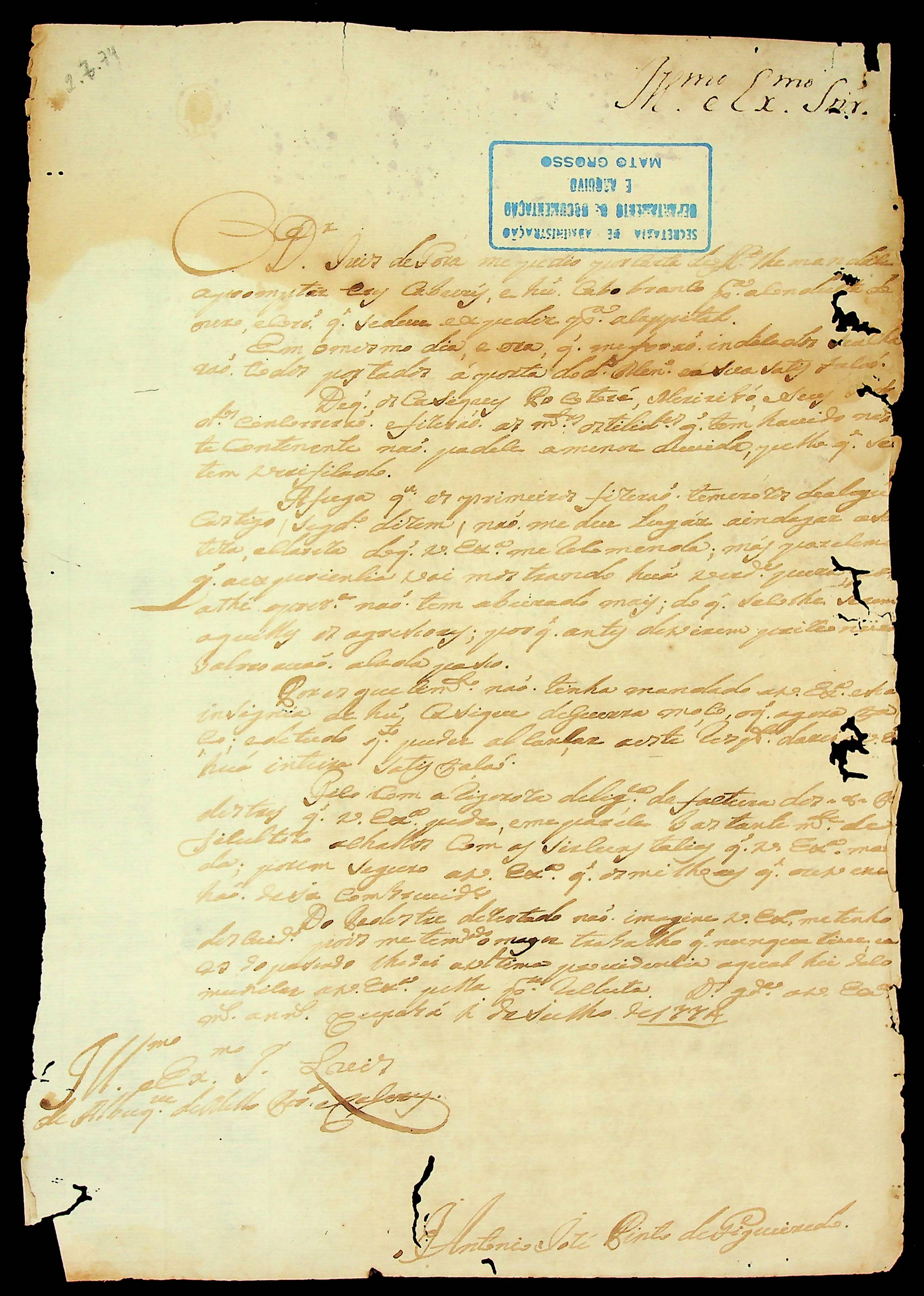 CARTA do [Mestre de Campo e Comandante] Antônio José Pinto de Figueiredo ao Governador e Capitão-General da Capitania de Mato Grosso Luiz de Albuquerque de Mello Pereira e Cáceres.