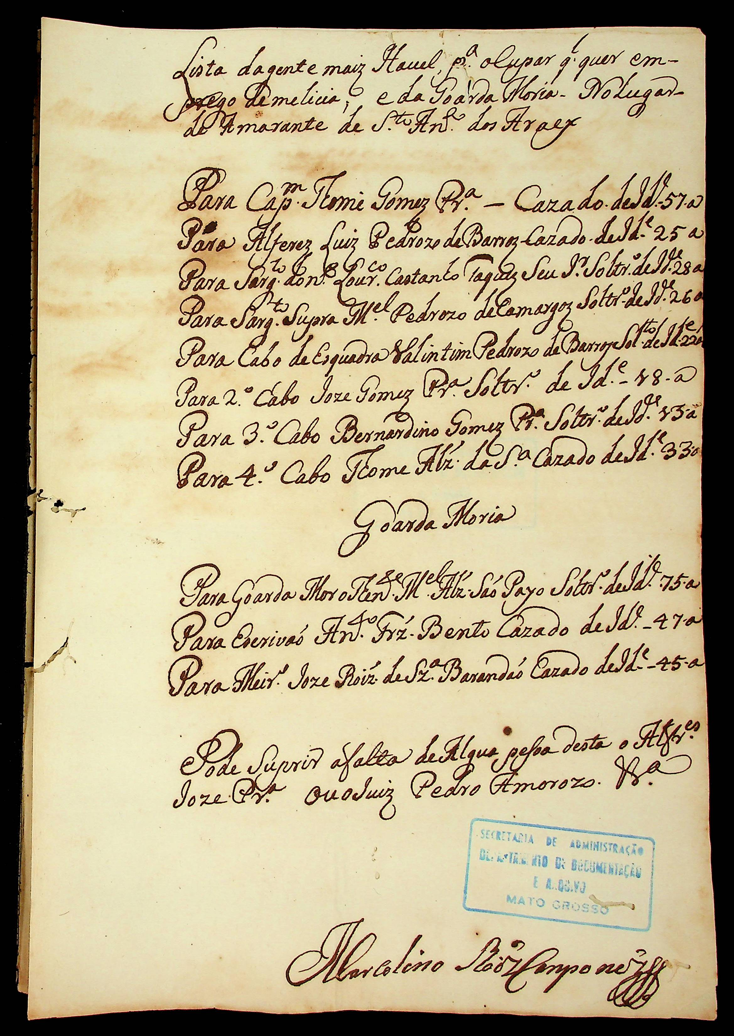 CARTA de Marcelino Rodrigues Camponês ao [Governador e Capitão-General da Capitania de Mato Grosso] Luiz de Albuquerque de Mello Pereira e Cáceres.