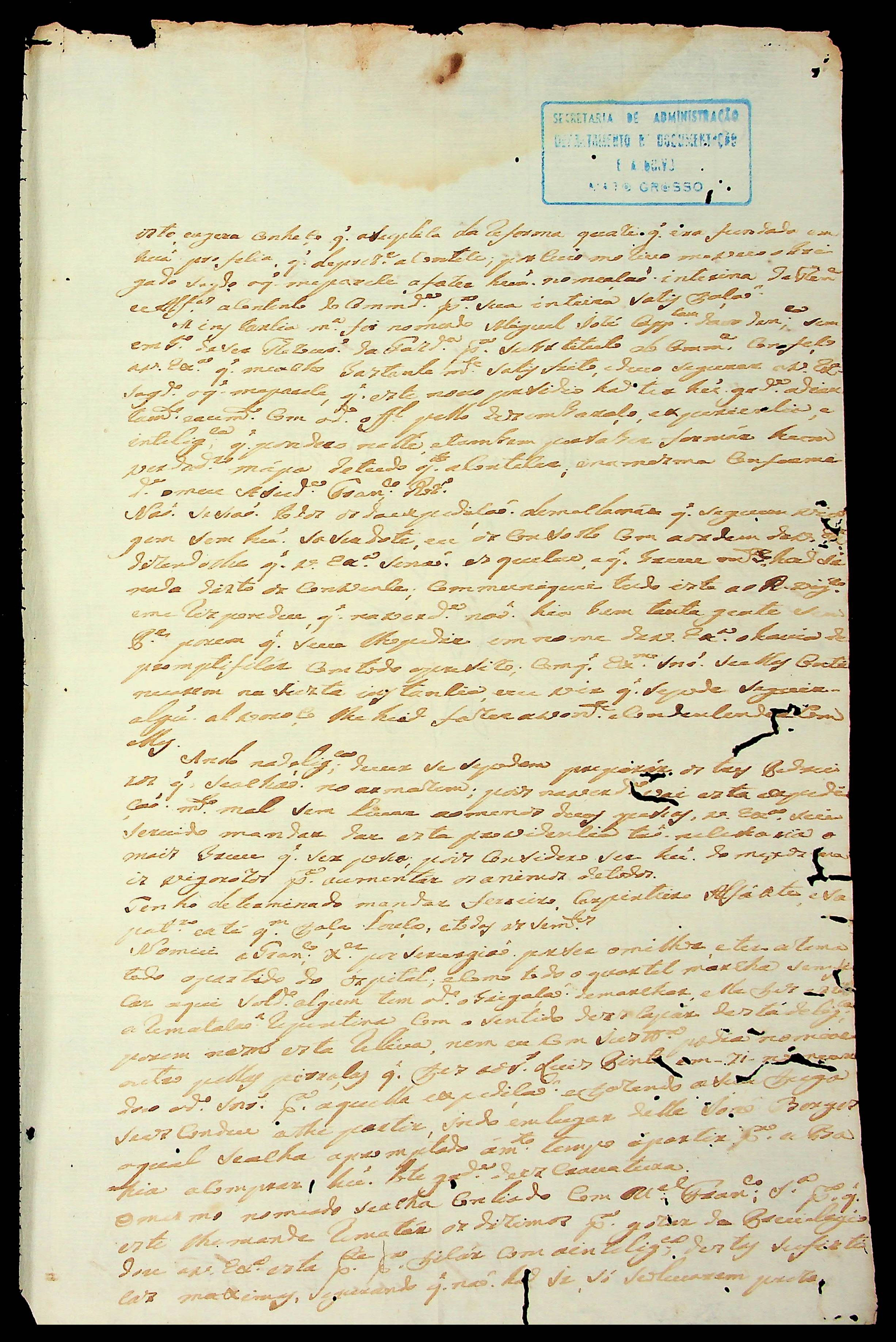CARTA do [Mestre de Campo] Antônio José Pinto de Figueiredo ao [Governador e Capitão-General da Capitania de Mato Grosso] Luiz de Albuquerque de Mello Pereira e Cáceres.