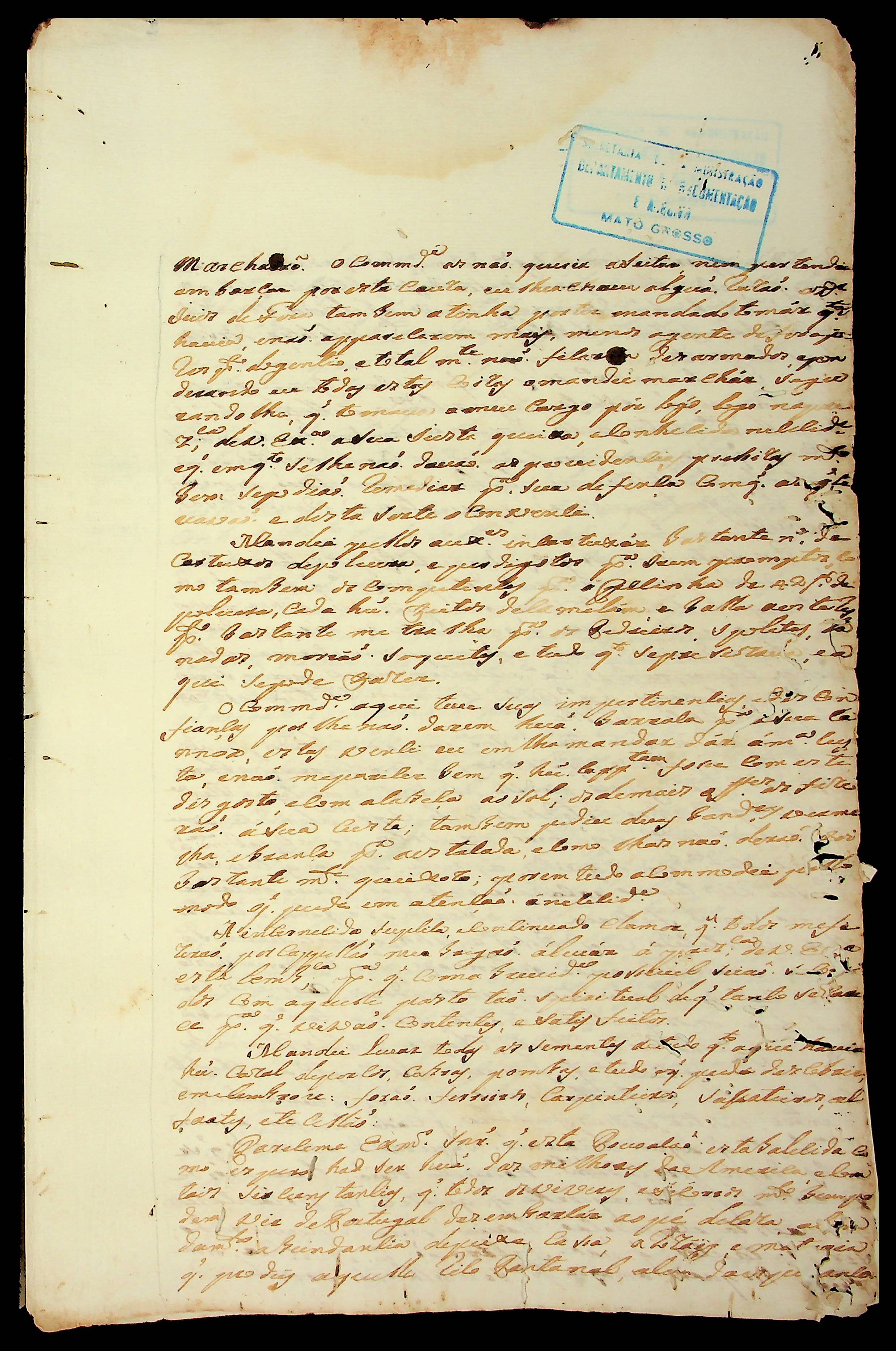CARTA do [Mestre de Campo e Comandante] Antônio José Pinto de Figueiredo ao [Governador e Capitão-General da Capitania de Mato Grosso Luiz de Albuquerque de Mello Pereira e Cáceres].