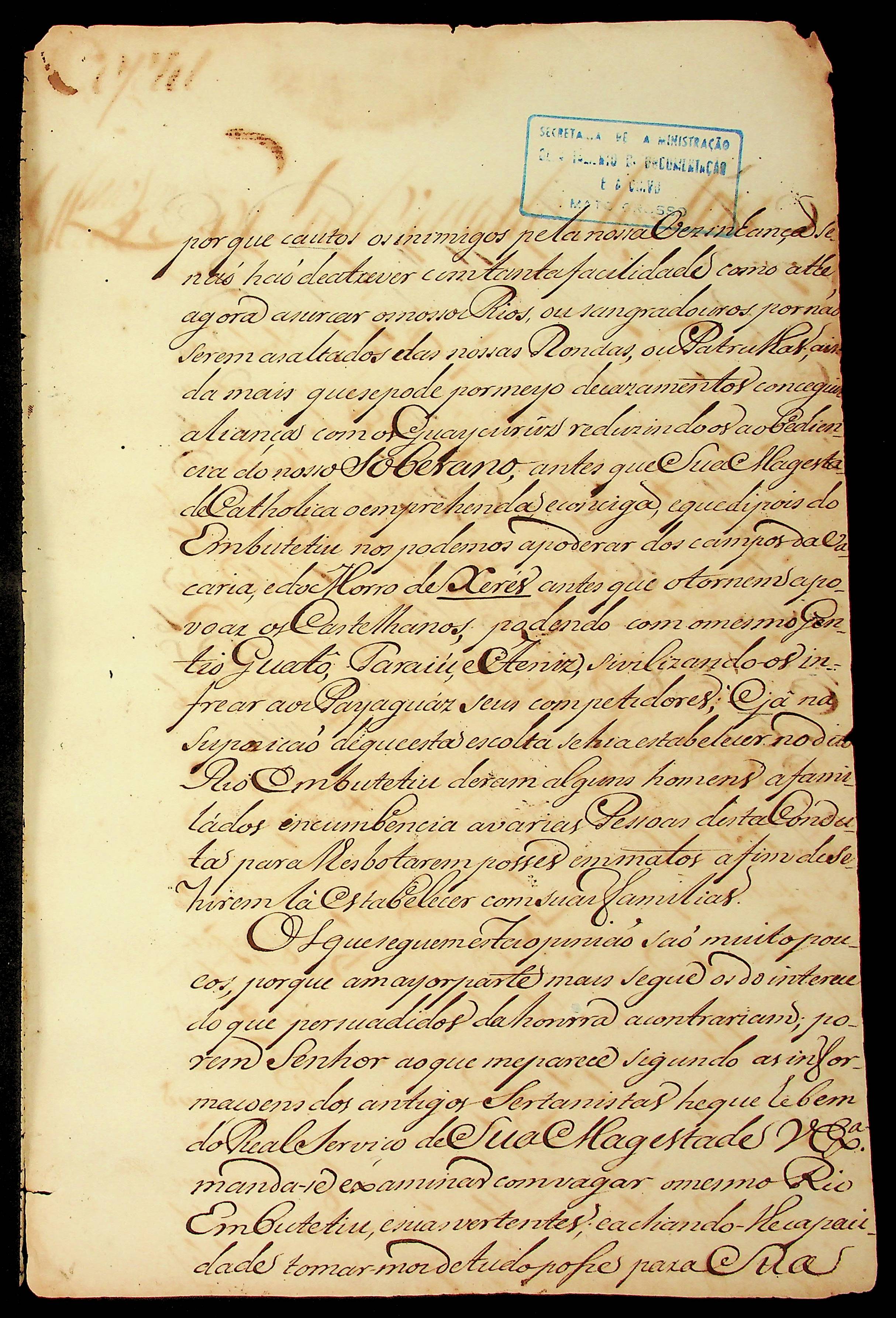CARTA de João José de Vasconcelos ao Governador e Capitão-General da Capitania de Mato Grosso Luiz de Albuquerque de Mello Pereira e Cáceres.