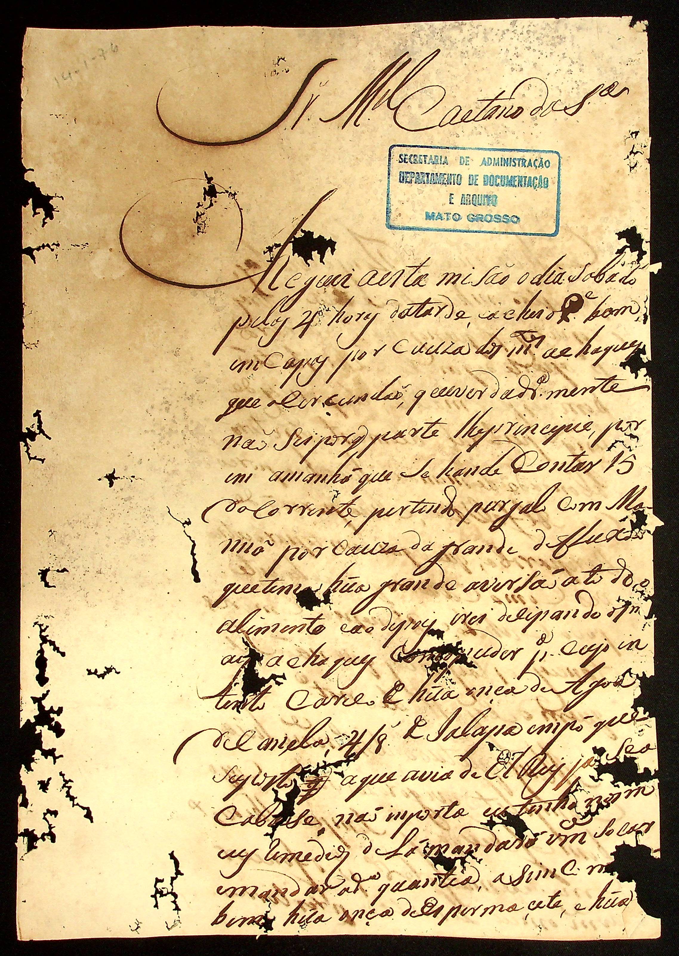 CARTA de Domingos José Luís de […] ao Governador e Capitão-General da Capitania de Mato Grosso Luiz de Albuquerque de Mello Pereira e Cáceres.