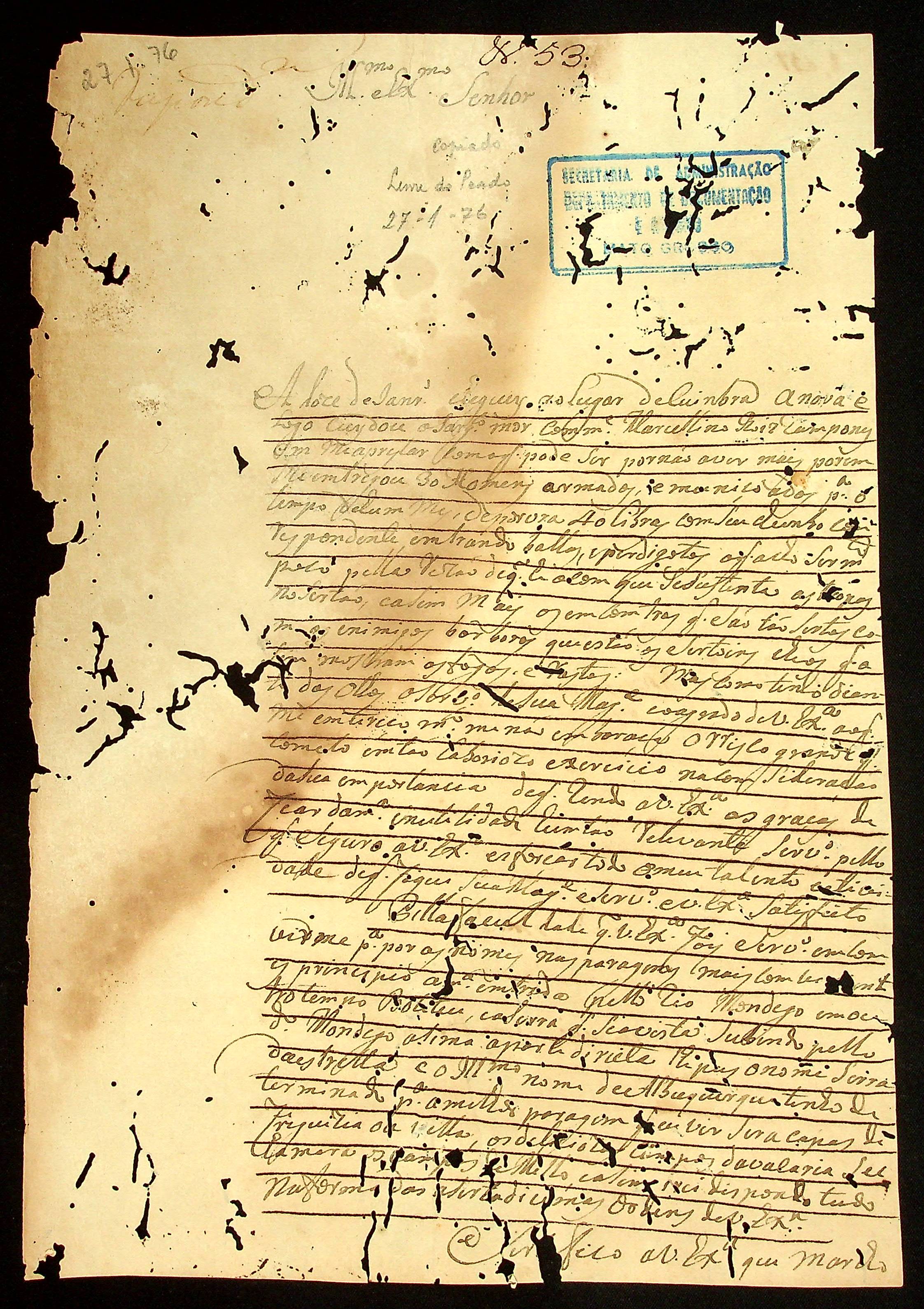 CARTA de João Leme do Prado ao [Governador e Capitão-General da Capitania de Mato Grosso] Luiz de Albuquerque de Mello Pereira e Cáceres.