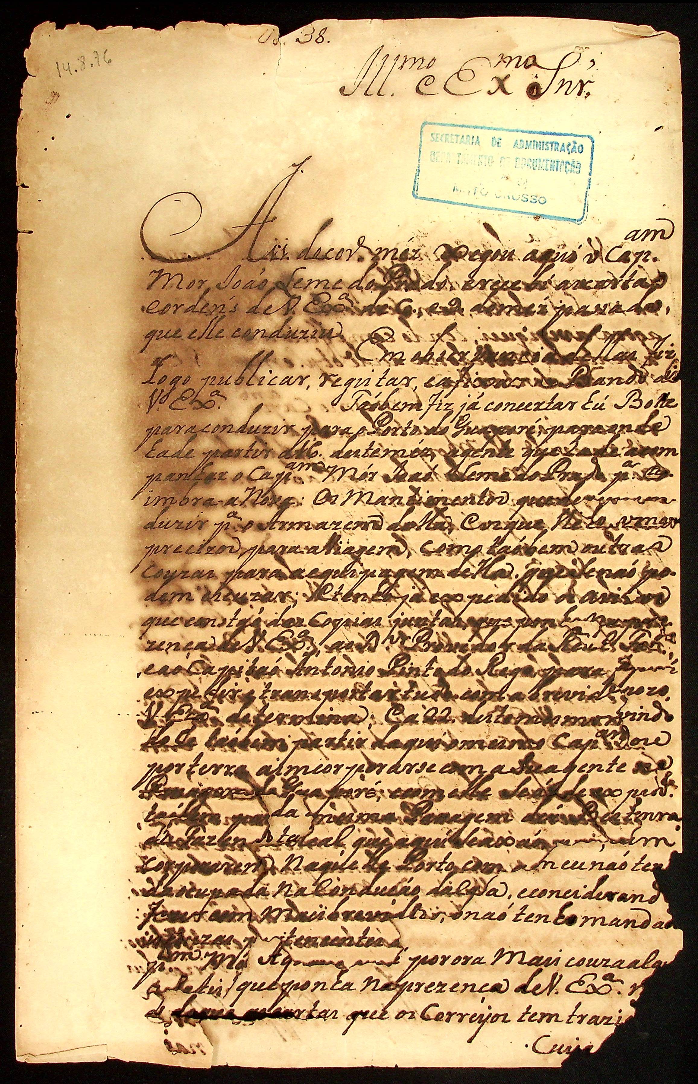 CARTA de Antônio Felipe da Cunha Ponte ao Governador e Capitão-General da Capitania de Mato Grosso Luiz de Albuquerque de Mello Pereira e Cáceres.