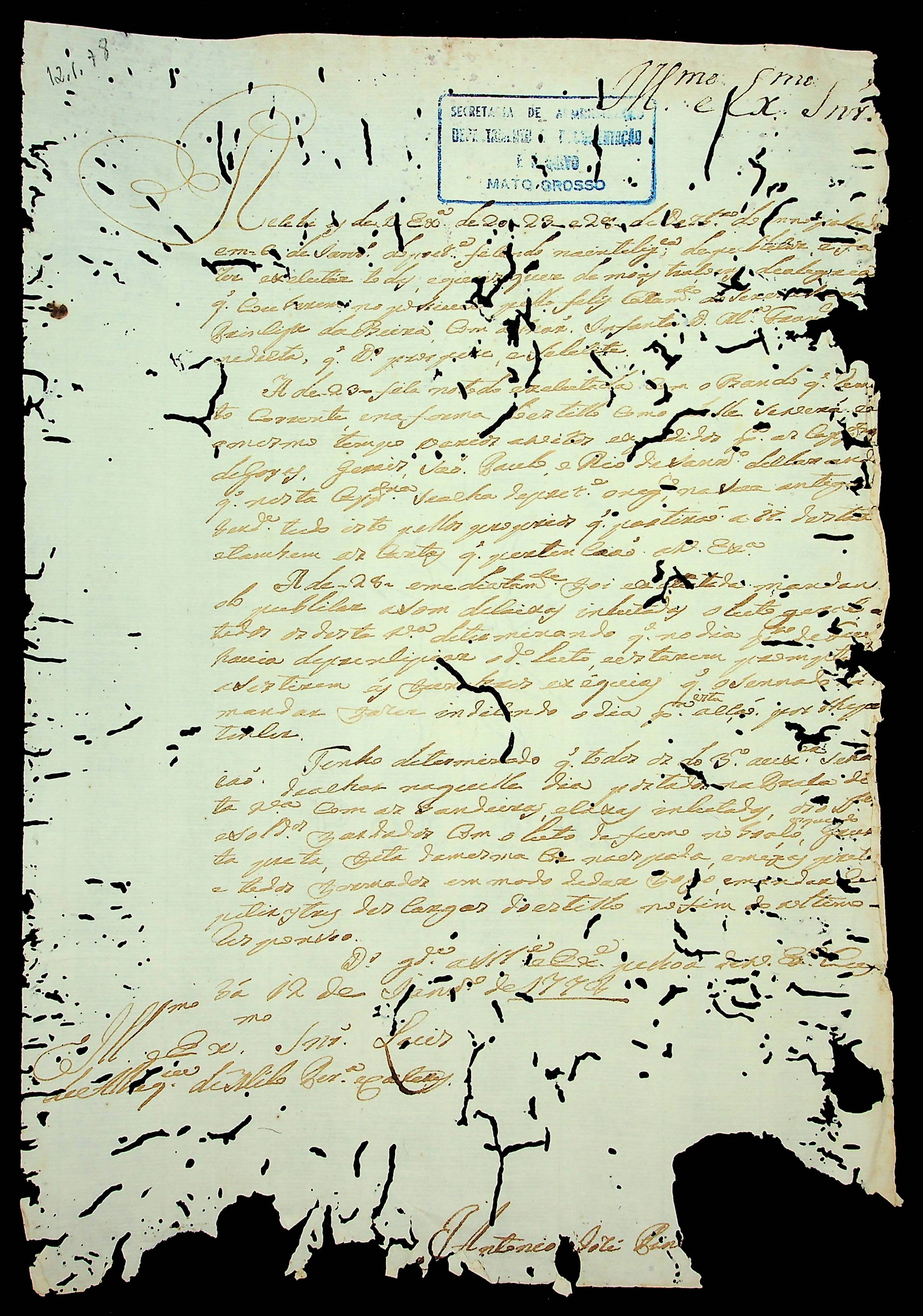 CARTA do [Mestre de Campo] Antônio José Pinto de Figueiredo ao [Governador e Capitão-General da Capitania de Mato Grosso] Luiz de Albuquerque de Mello Pereira e Cáceres.