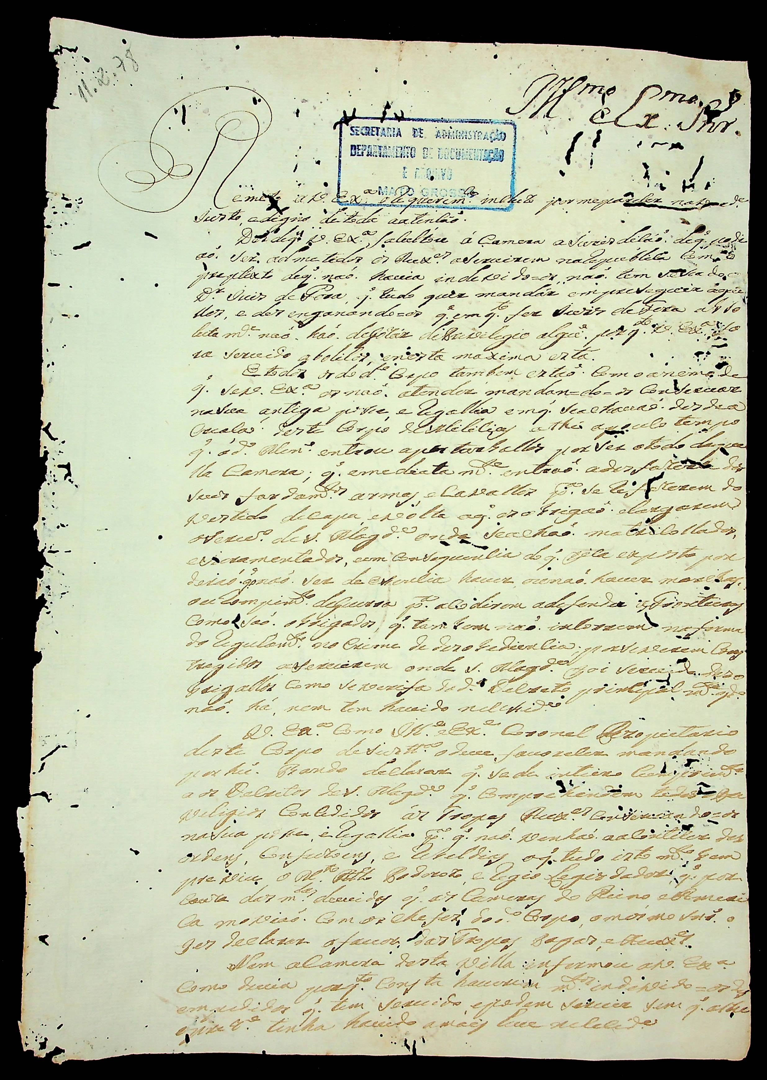 CARTA do [Mestre de Campo] Antônio José Pinto de Figueiredo ao [Governador e Capitão-General da Capitania de Mato Grosso] Luiz de Albuquerque de Mello Pereira e Cáceres.