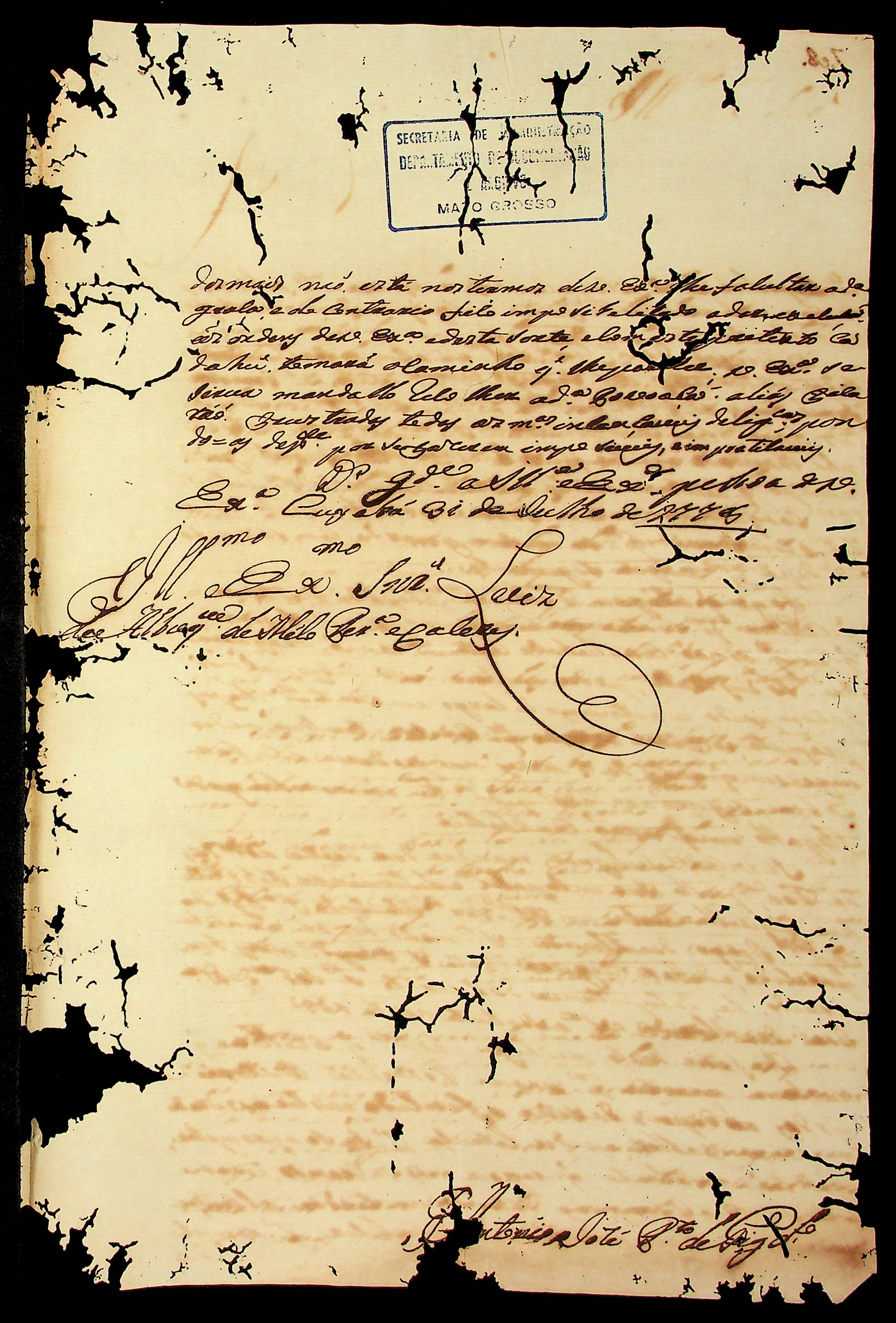 CARTA do [Mestre de Campo] Antônio José Pinto de Figueiredo ao [Governador e Capitão-General da Capitania de Mato Grosso] Luiz de Albuquerque de Mello Pereira e Cáceres.