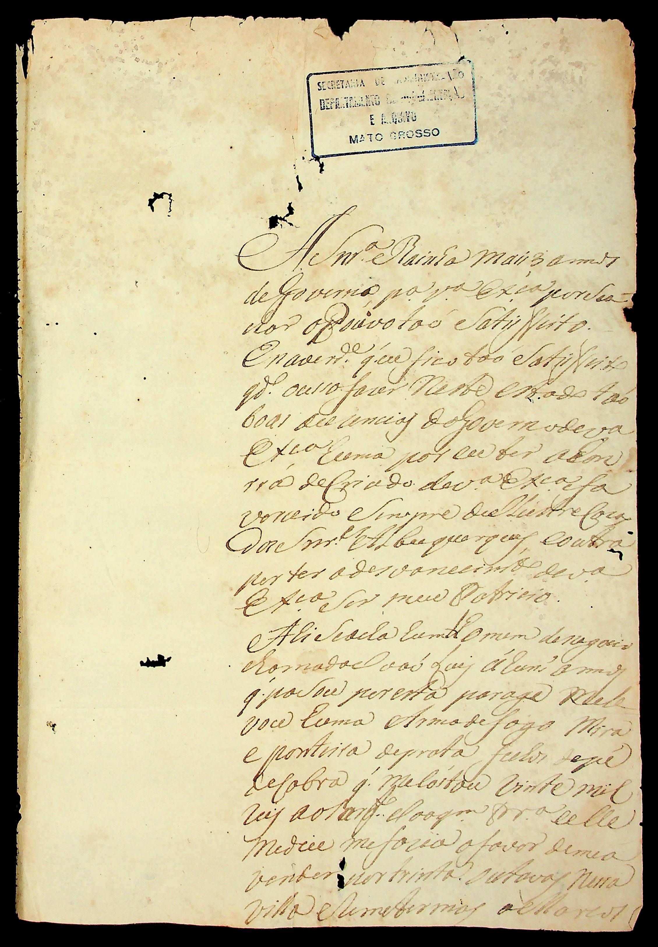 CARTA de Francisco Coelho de Mesquita ao [Governador e Capitão-General da Capitania de Mato Grosso Luiz de Albuquerque de Mello Pereira e Cáceres].