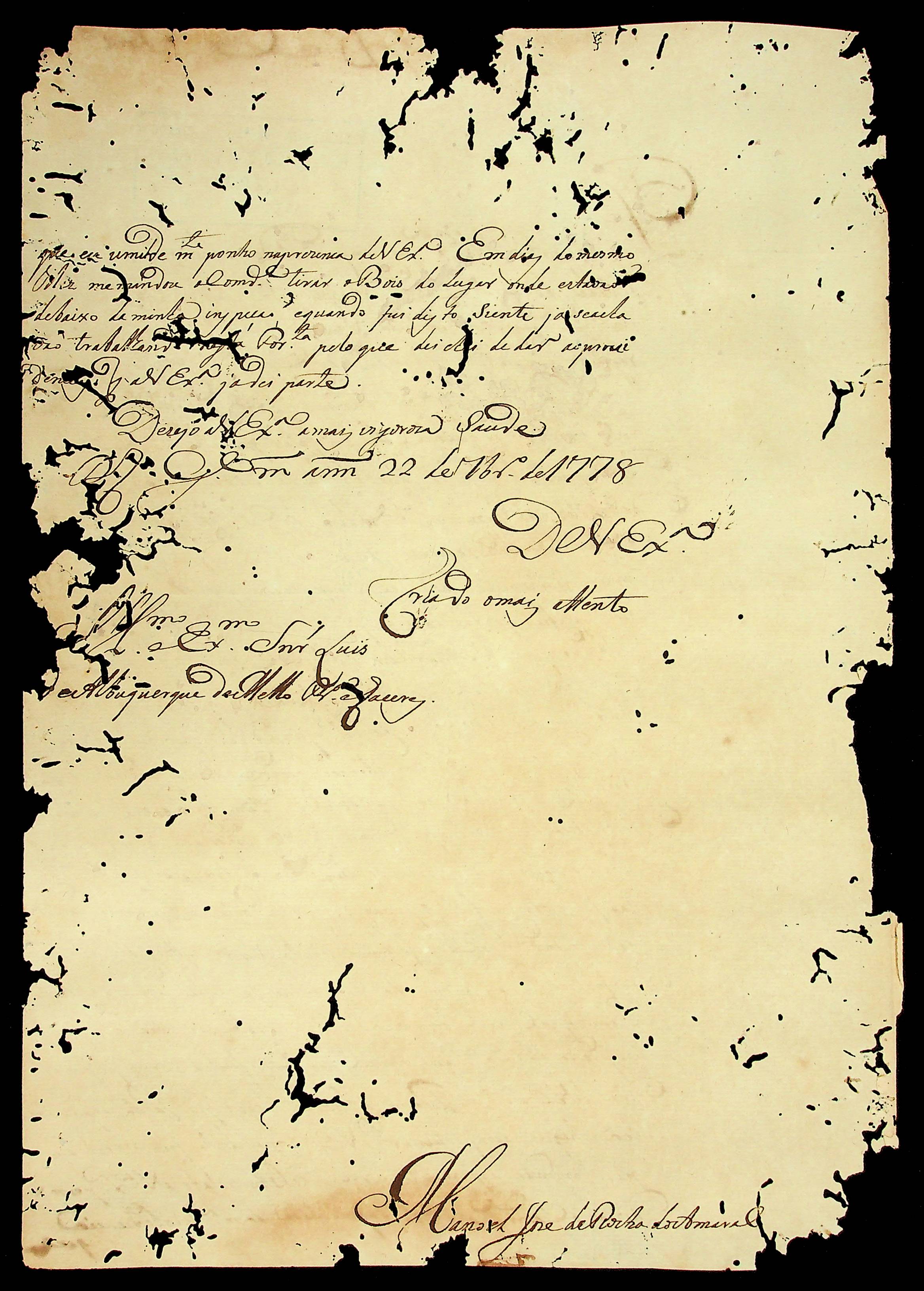 CARTA do [Tenente] Manoel José da Rocha do Amaral ao Governador e Capitão-General da Capitania de Mato Grosso Luiz de Albuquerque de Mello Pereira e Cáceres.