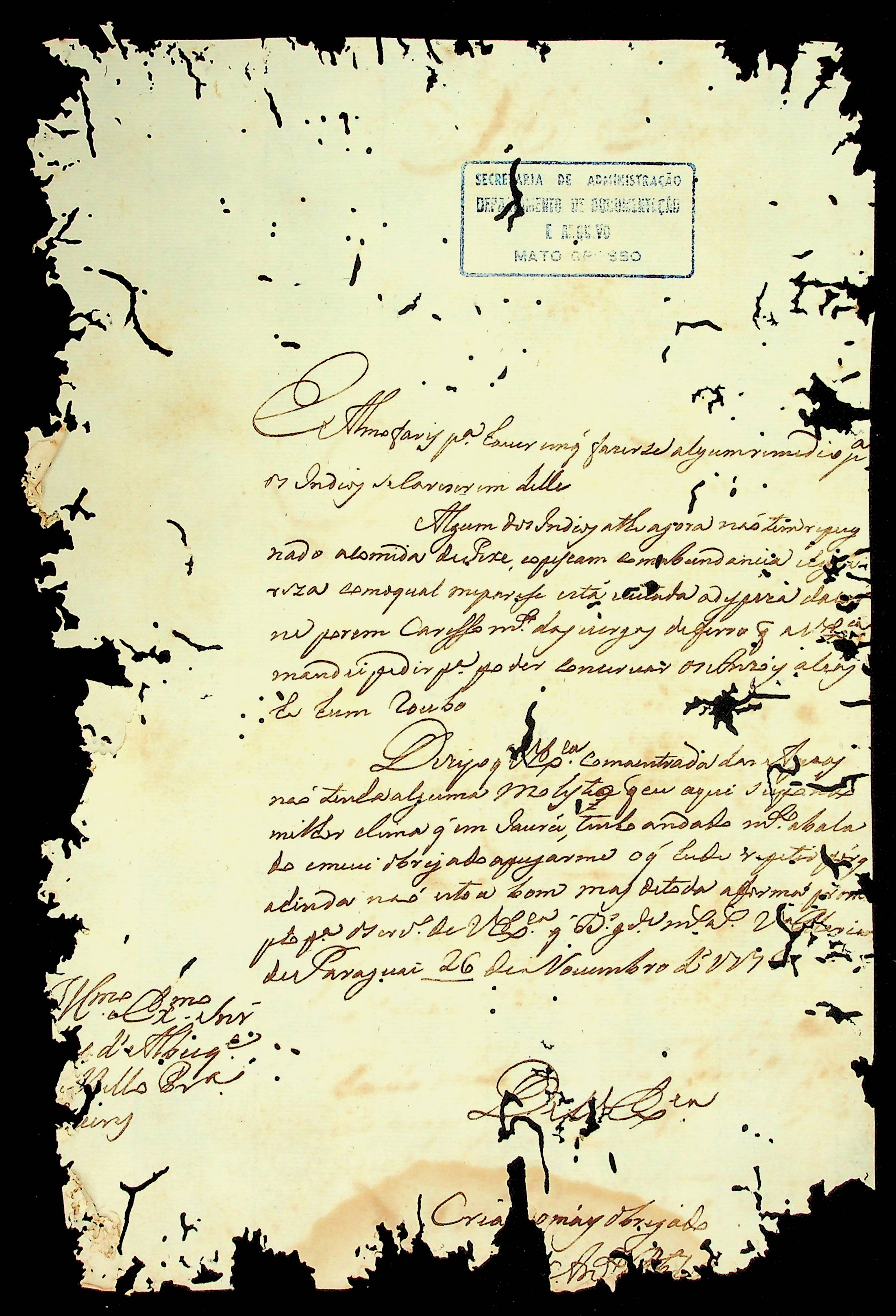 CARTA do [Capitão Antônio Pinto do Rego Carvalho] ao [Governador e Capitão-General da Capitania de Mato Grosso] Luiz de Albuquerque de Mello Pereira e Cáceres.