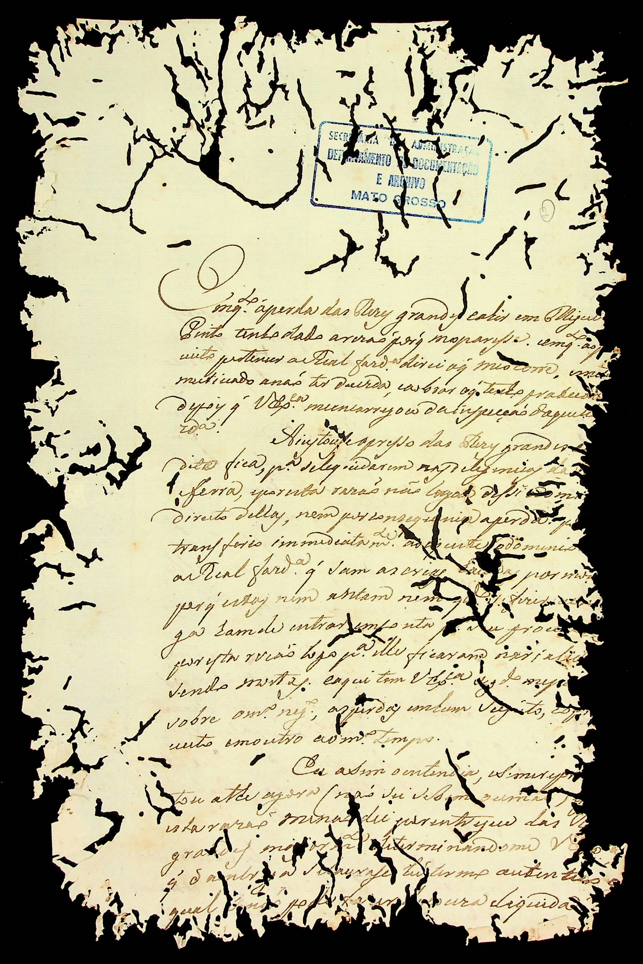 CARTA [Luiz Pinto de Figueiredo] enviada ao Governador e Capitão-General da Capitania de Mato Grosso Luiz de Albuquerque de Mello Pereira e Cáceres.
