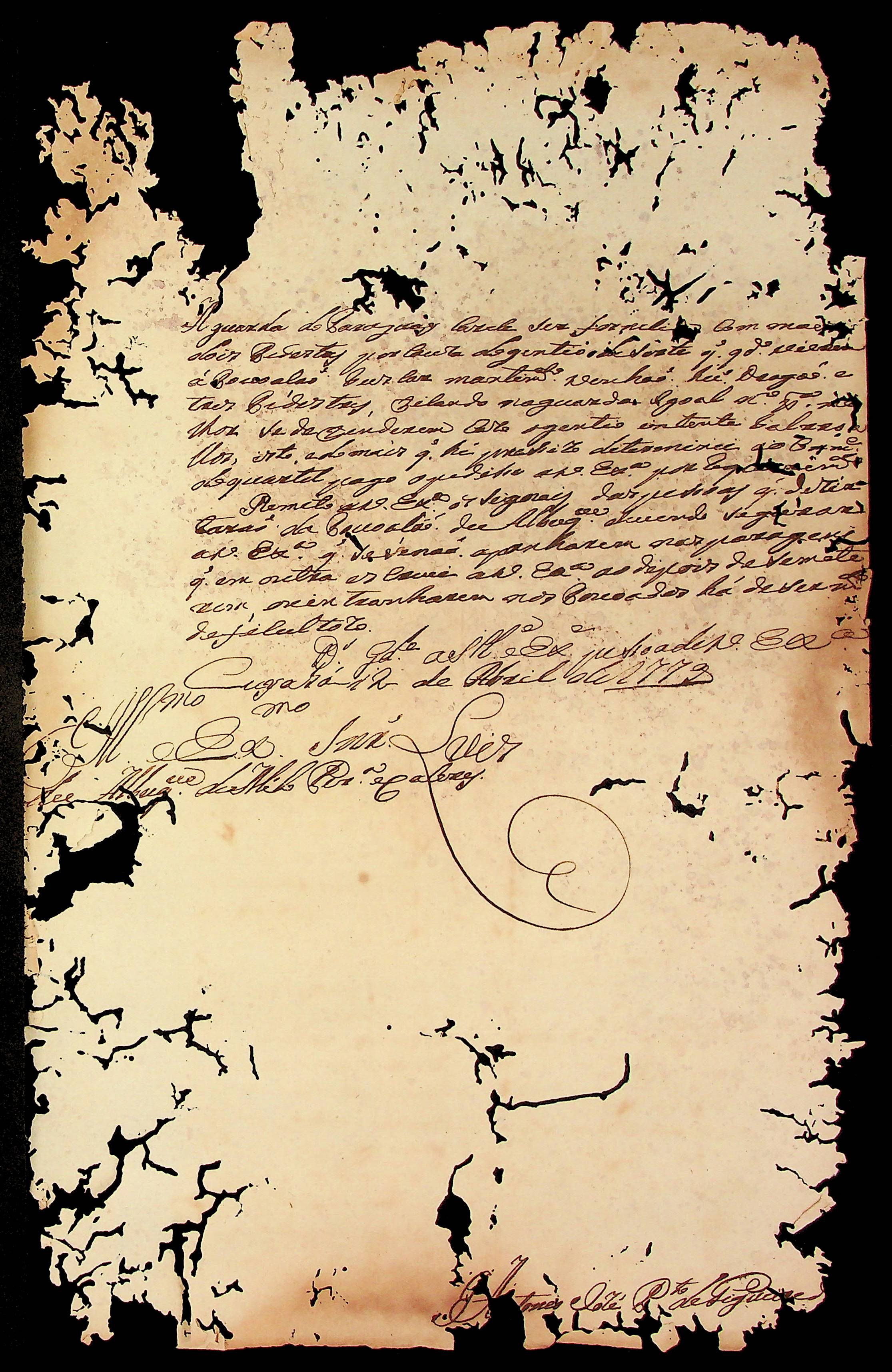 CARTA do [Mestre de Campo] Antônio José Pinto de Figueiredo ao [Governador e Capitão-General da Capitania de Mato Grosso] Luiz de Albuquerque de Mello Pereira e Cáceres.