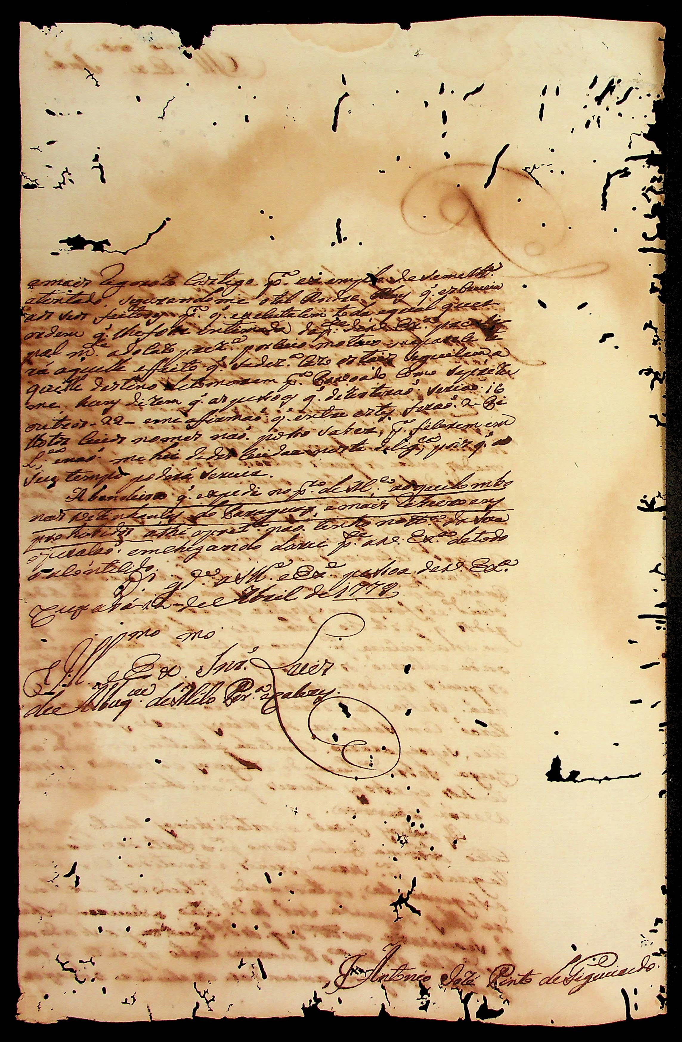 CARTA do [Mestre de Campo] Antônio José Pinto de Figueiredo ao [Governador e Capitão-General da Capitania de Mato Grosso] Luiz de Albuquerque de Mello Pereira e Cáceres.