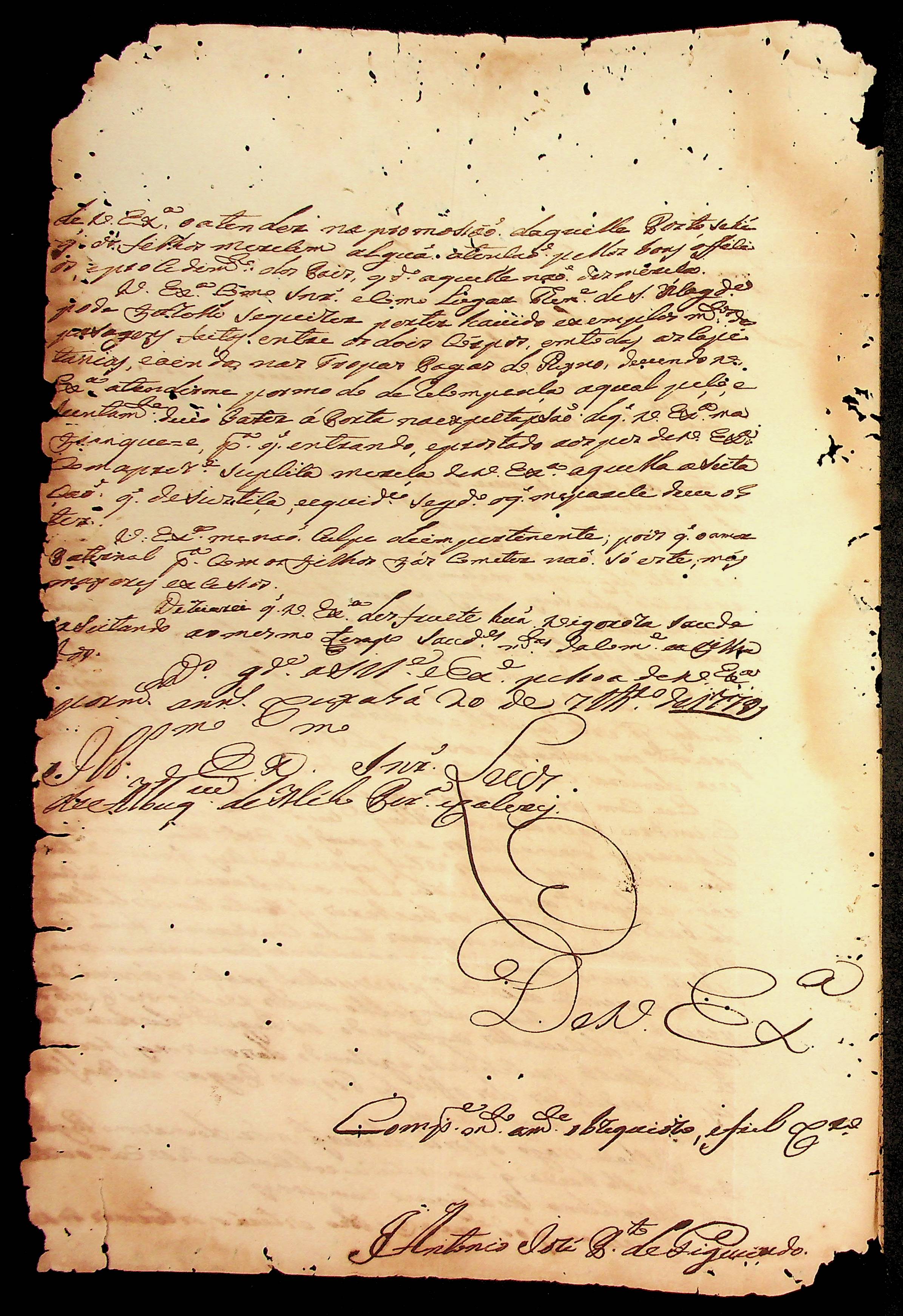 CARTA do [Mestre de Campo] Antônio José Pinto de Figueiredo ao [Governador e Capitão-General da Capitania de Mato Grosso] Luiz de Albuquerque de Mello Pereira e Cáceres.