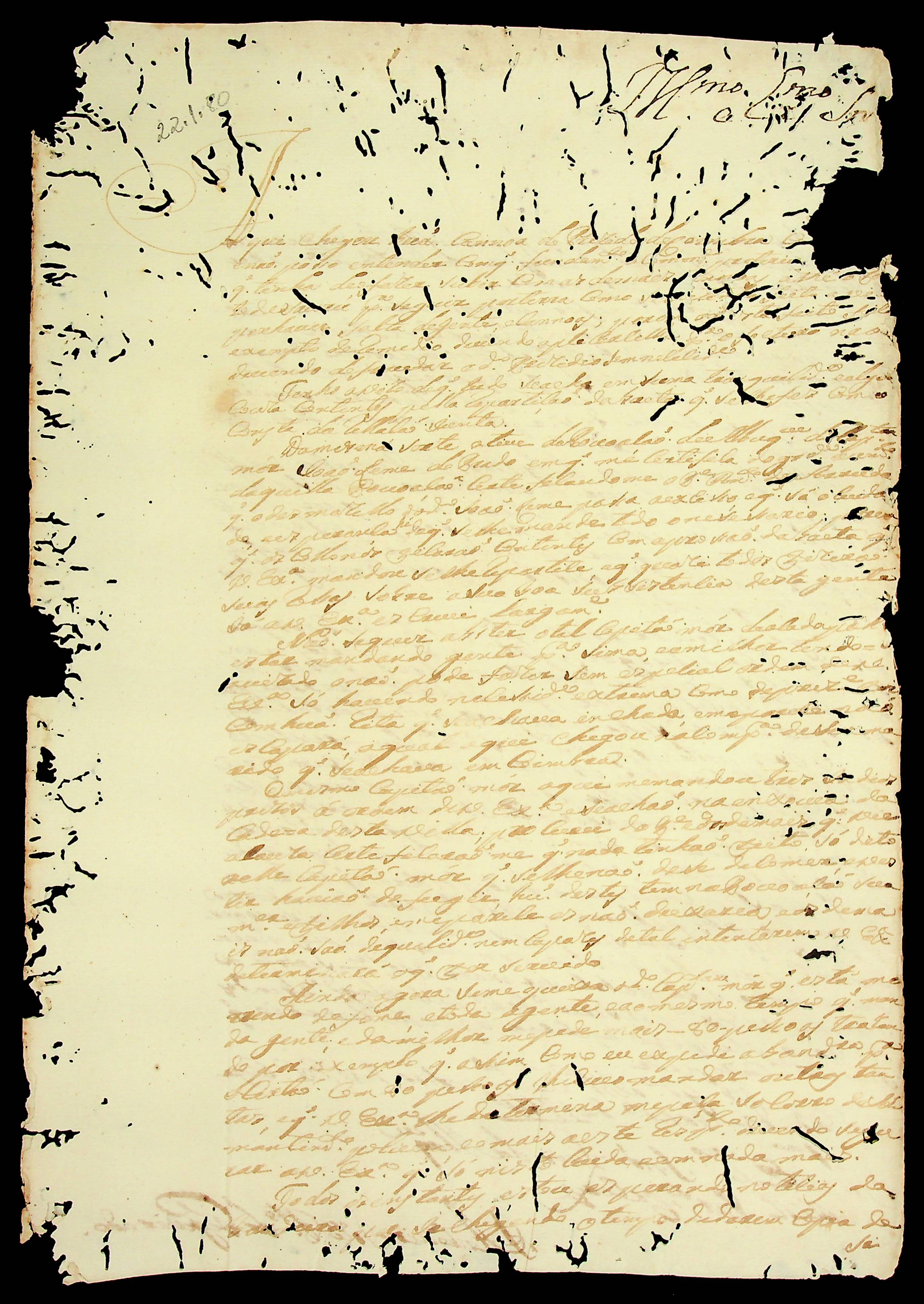 CARTA do [Mestre de Campo] Antônio José Pinto de Figueiredo ao [Governador e Capitão-General da Capitania de Mato Grosso] Luiz de Albuquerque de Mello Pereira e Cáceres.