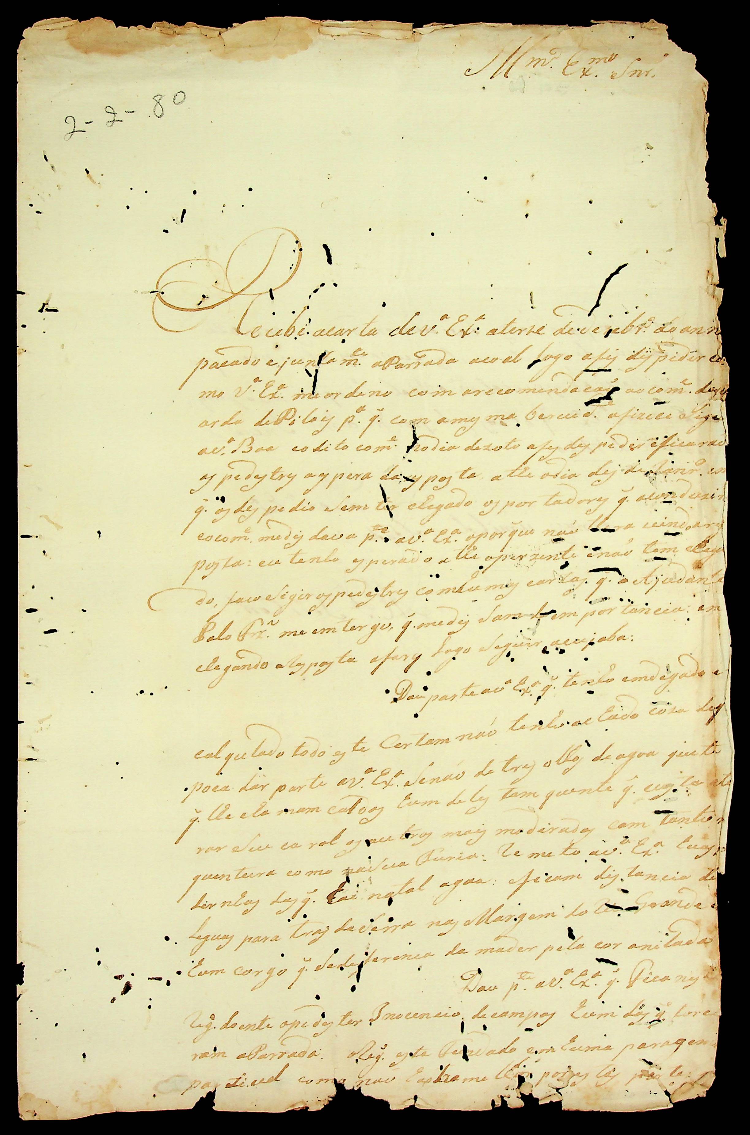 CARTA do Soldado Manuel José Corrêa ao [Governador e Capitão-General da Capitania de Mato Grosso] Luiz de Albuquerque de Mello Pereira e Cáceres.