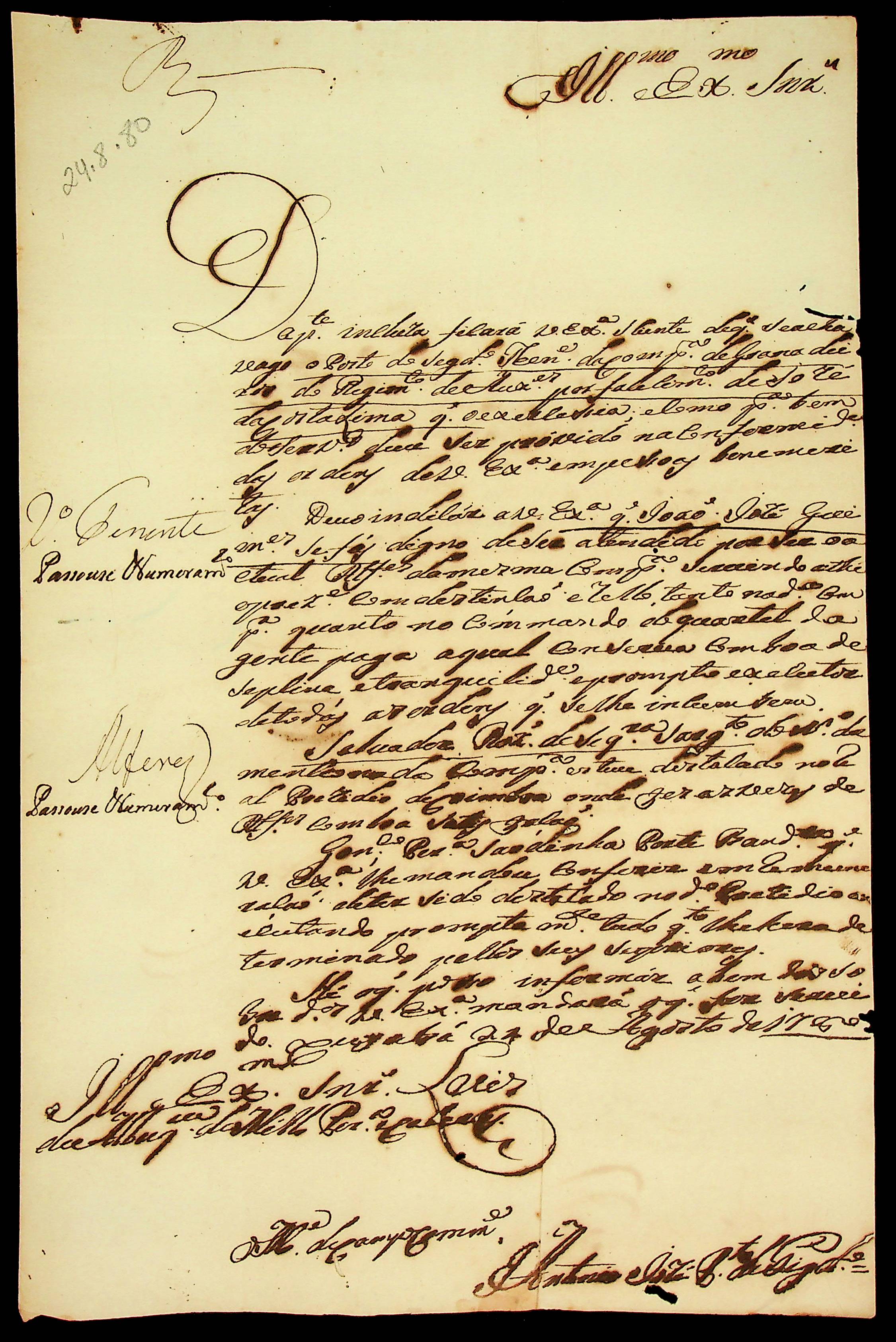 CARTA do Mestre de Campo Antônio José Pinto de Figueiredo ao [Governador e Capitão-General da Capitania de Mato Grosso] Luiz de Albuquerque de Mello Pereira e Cáceres.