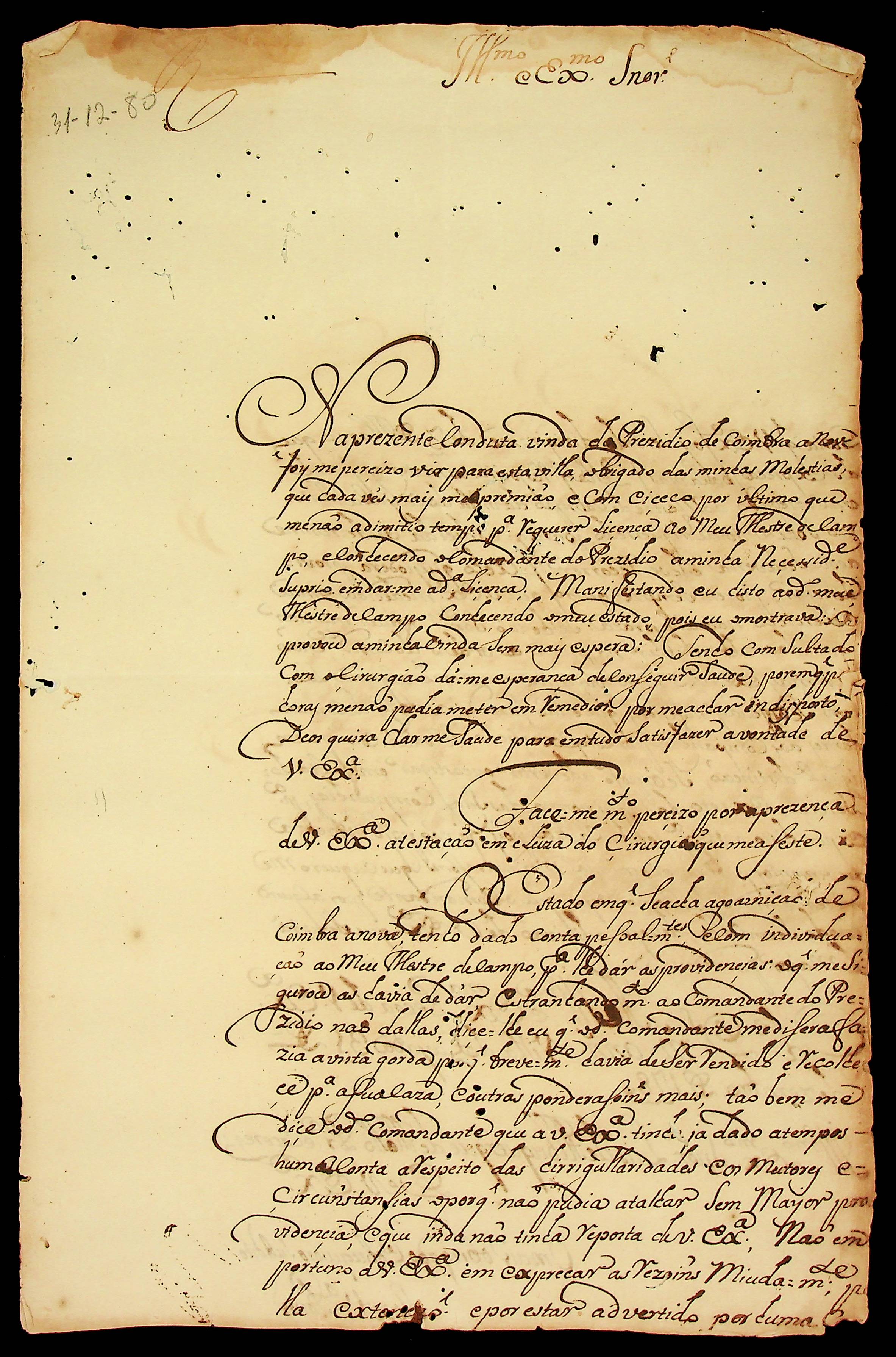 CARTA de José Vieira Passos ao [Governador e Capitão-General da Capitania de Mato Grosso] Luiz de Albuquerque de Mello Pereira e Cáceres.