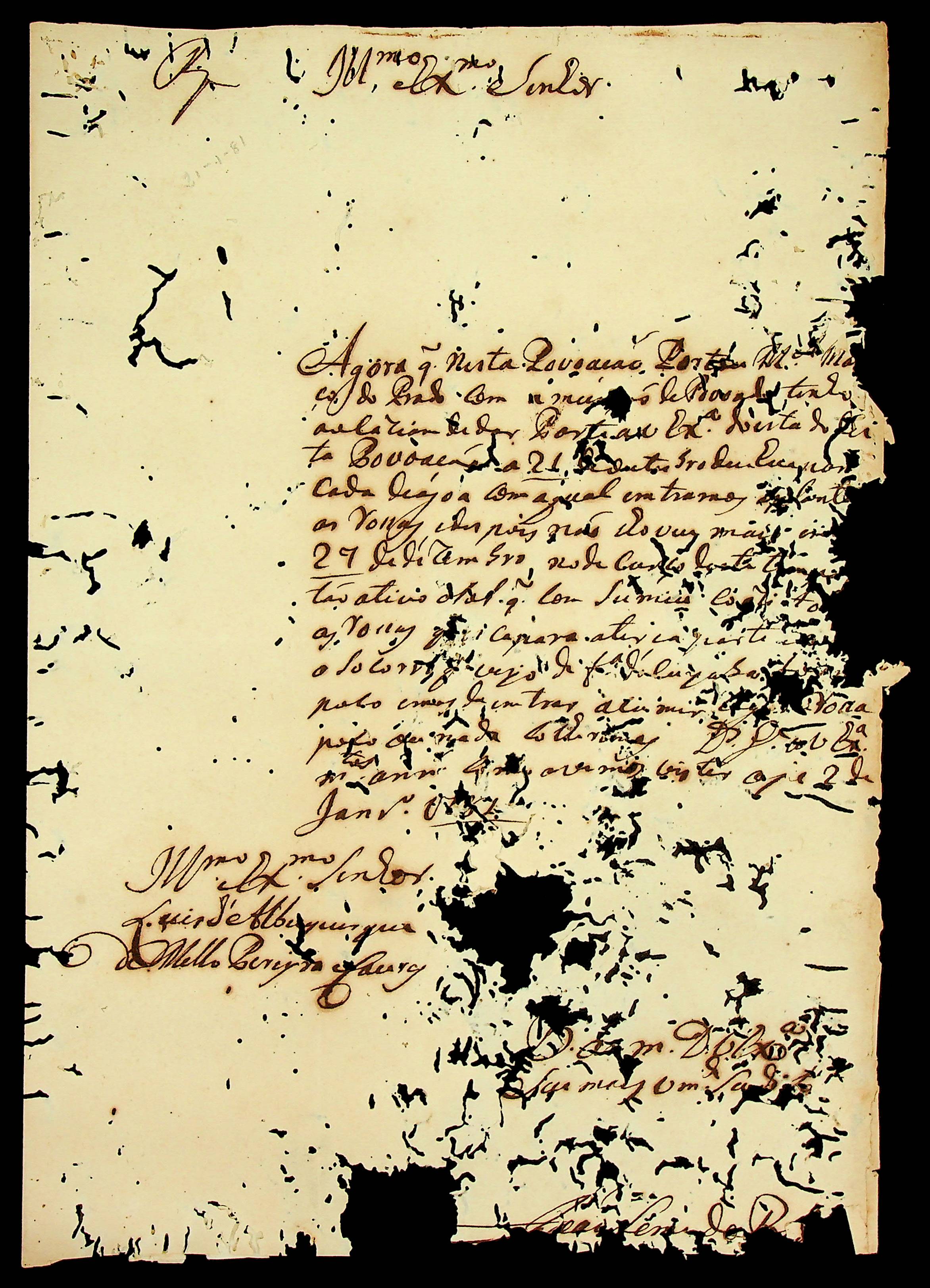 CARTA de João Leme do Prado ao Governador e Capitão-General da Capitania de Mato Grosso Luiz de Albuquerque de Mello Pereira e Cáceres.
