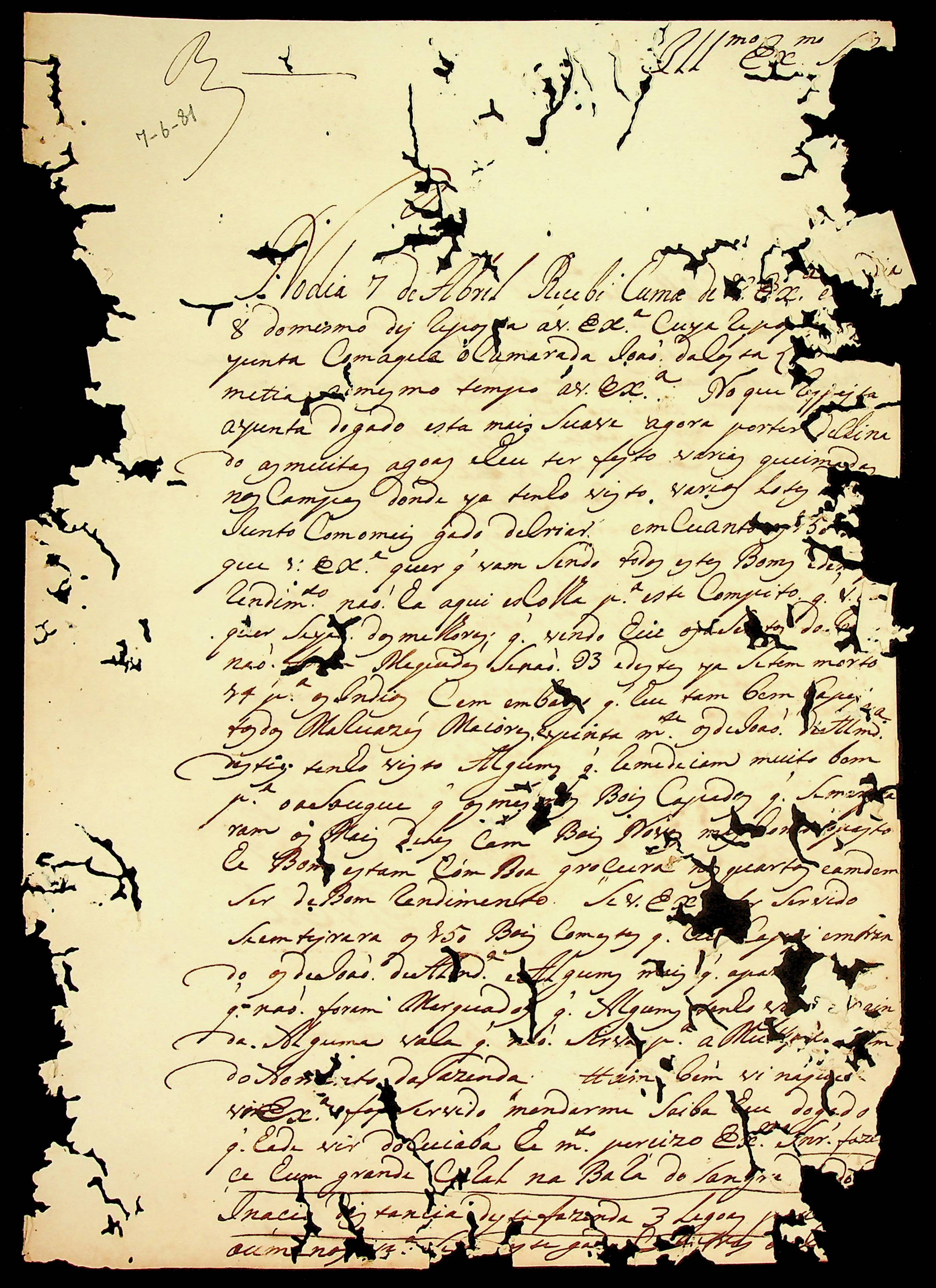 CARTA do Soldado Manoel da [Costa] ao [Governador e Capitão-General da Capitania de Mato Grosso] Luiz de Albuquerque de Mello Pereira e Cáceres.