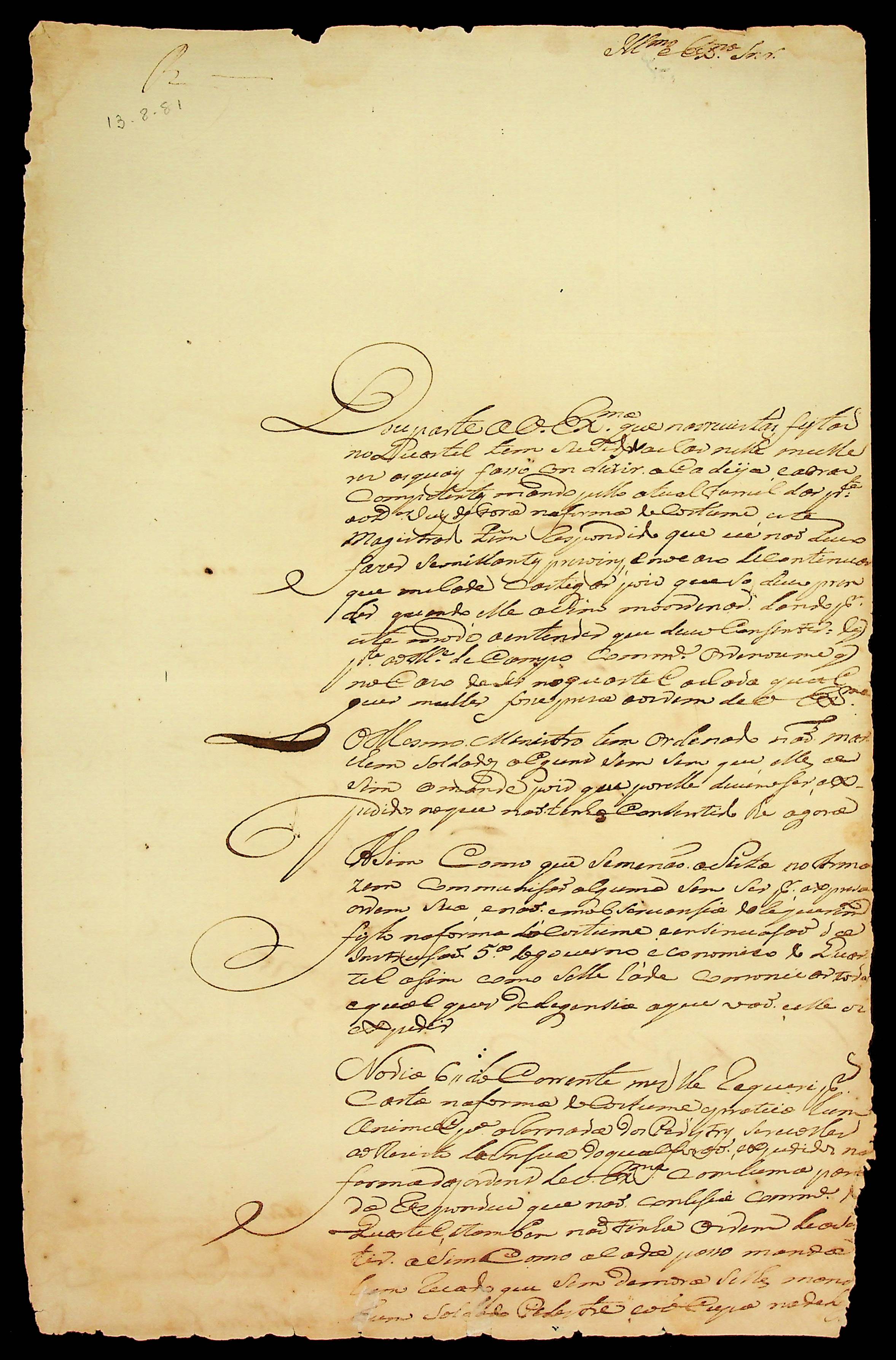 CARTA de João José Pinto de Guimarães ao [Governador e Capitão-General da Capitania de Mato Grosso] Luiz de Albuquerque de Mello Pereira e Cáceres.