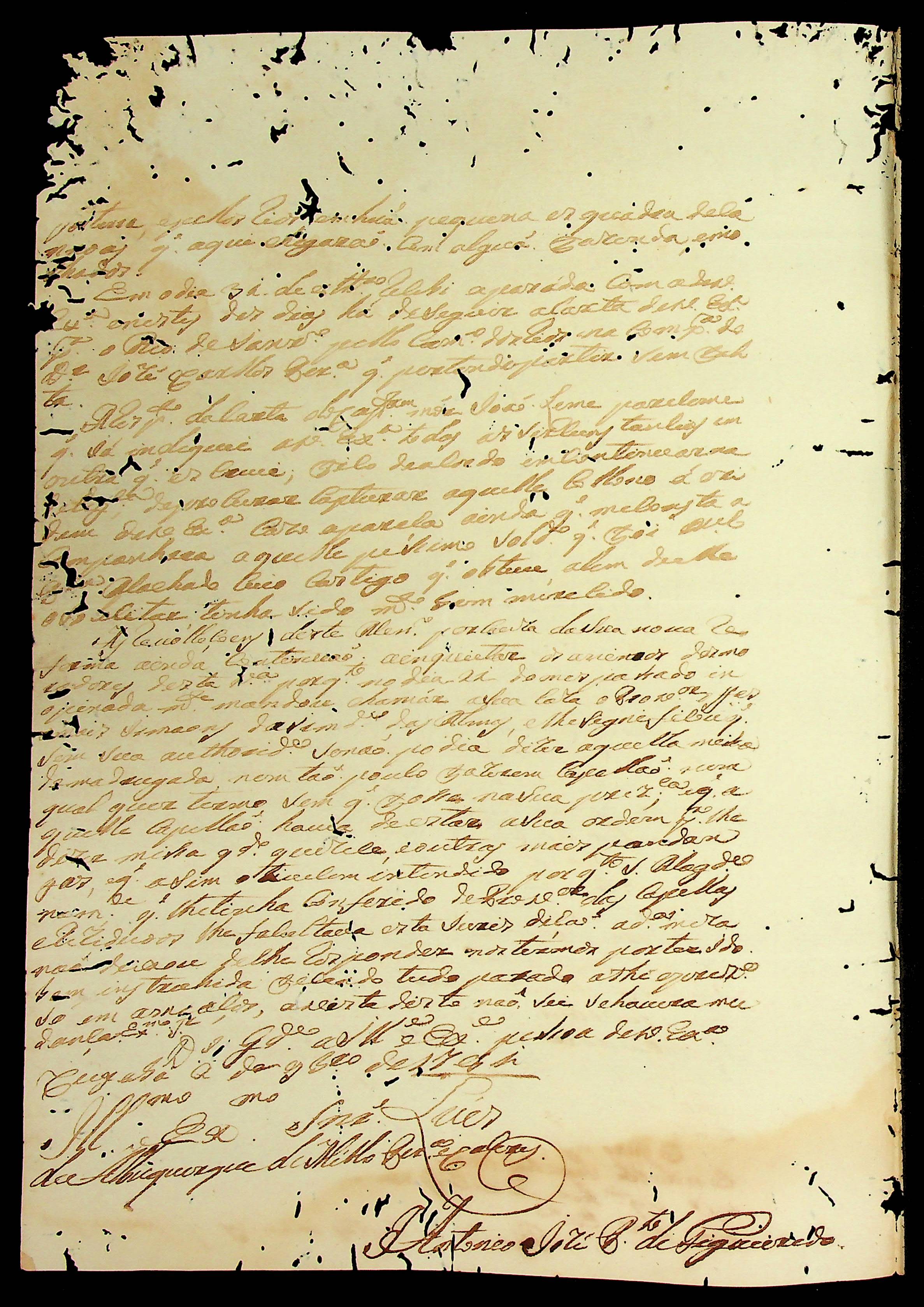 CARTA do [Mestre de Campo] Antônio José Pinto de Figueiredo ao [Governador e Capitão-General da Capitania de Mato Grosso] Luiz de Albuquerque de Mello Pereira e Cáceres.