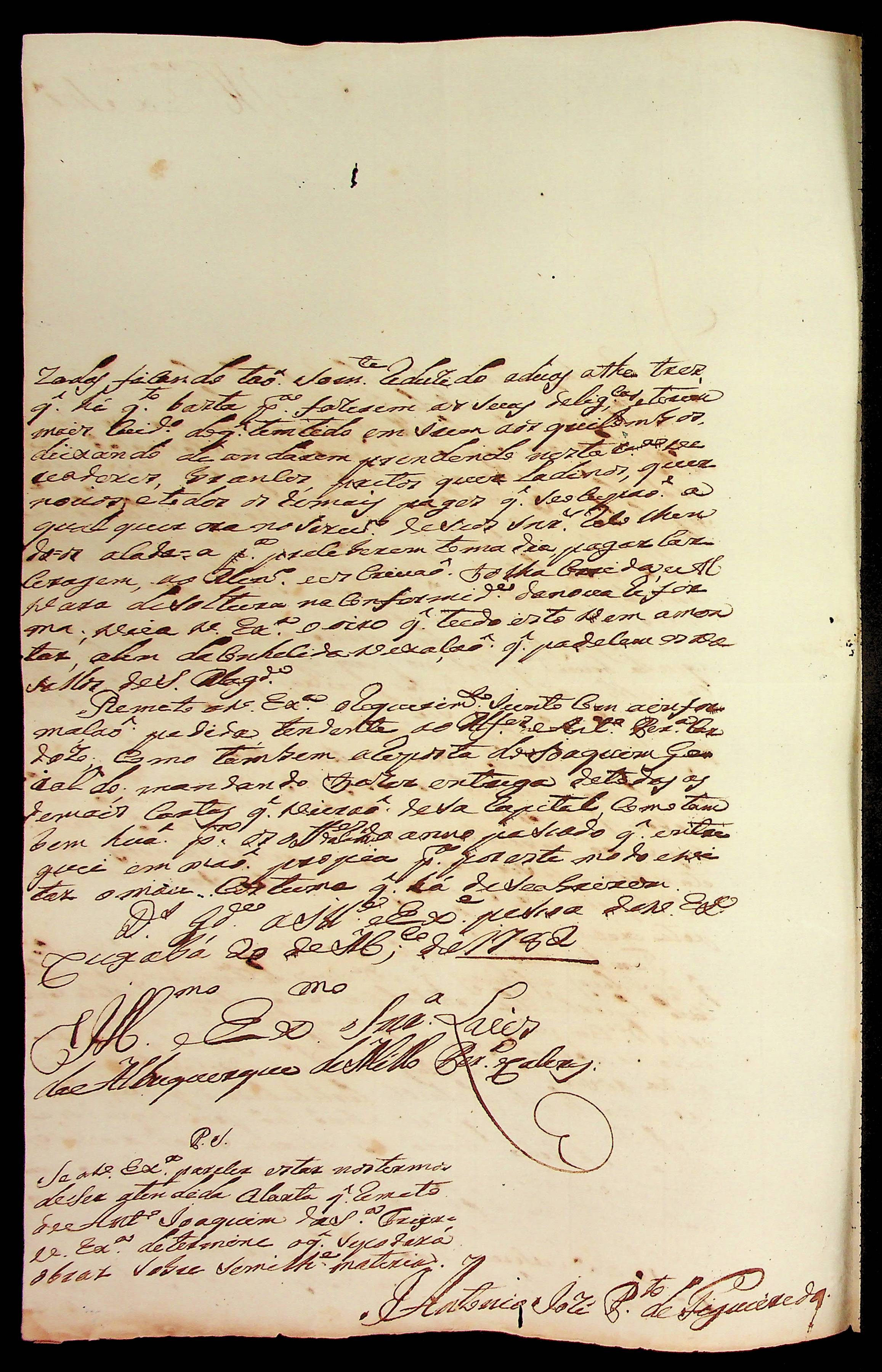 CARTA do [Mestre de Campo] Antônio José Pinto de Figueiredo ao [Governador e Capitão-General da Capitania de Mato Grosso] Luiz de Albuquerque de Mello Pereira e Cáceres.