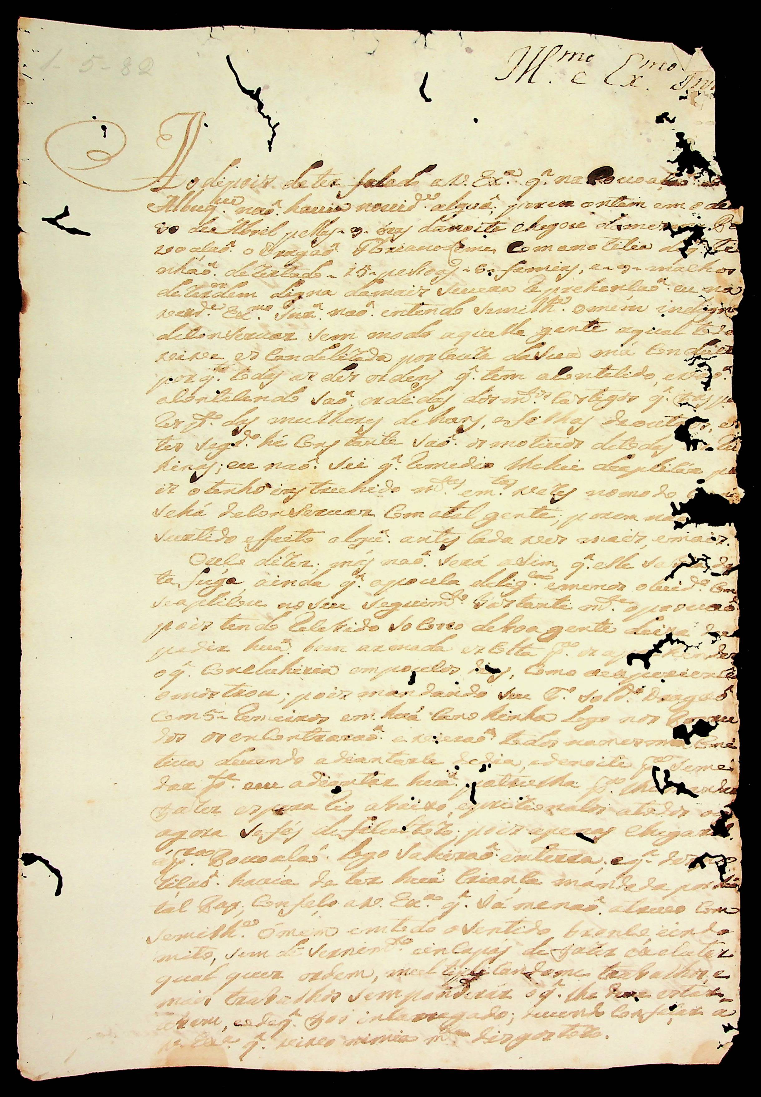 CARTA do [Mestre de Campo] Antônio José Pinto de Figueiredo ao [Governador e Capitão-General da Capitania de Mato Grosso] Luiz de Albuquerque de Mello Pereira e Cáceres.
