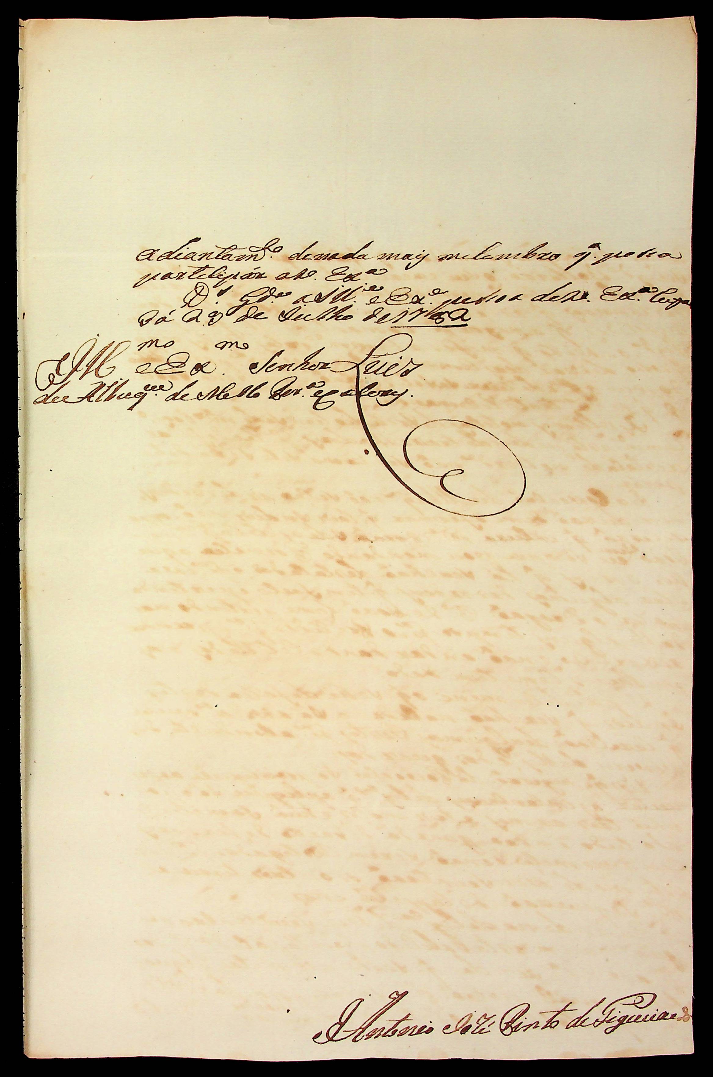 CARTA do [Mestre de Campo] Antônio José Pinto de Figueiredo ao [Governador e Capitão-General da Capitania de Mato Grosso] Luiz de Albuquerque de Mello Pereira e Cáceres.
