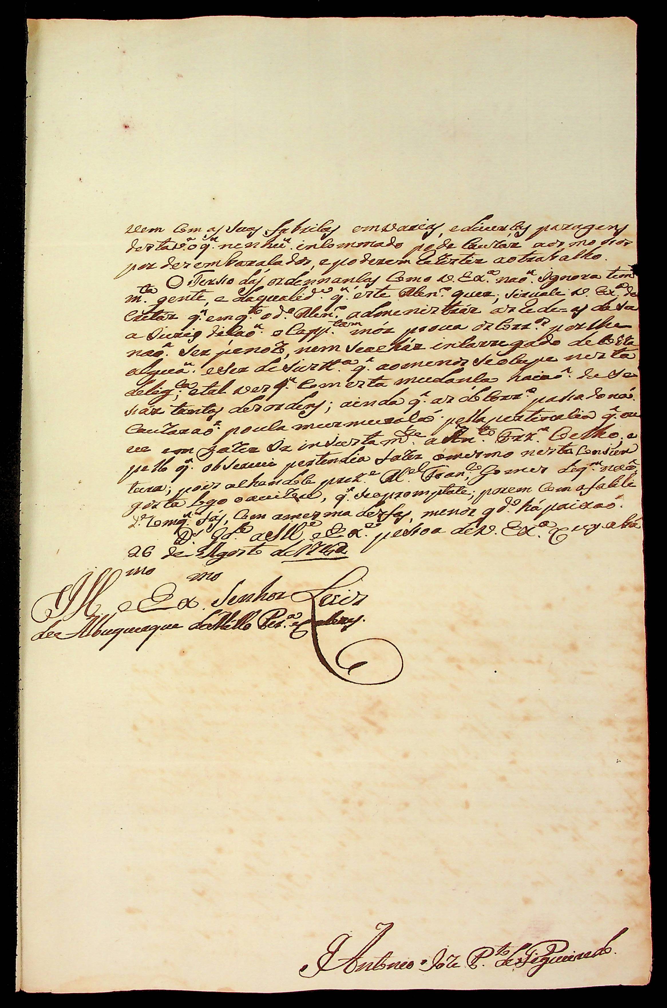 CARTA do [Mestre de Campo] Antônio José Pinto de Figueiredo ao [Governador e Capitão-General da Capitania de Mato Grosso] Luiz de Albuquerque de Mello Pereira e Cáceres.