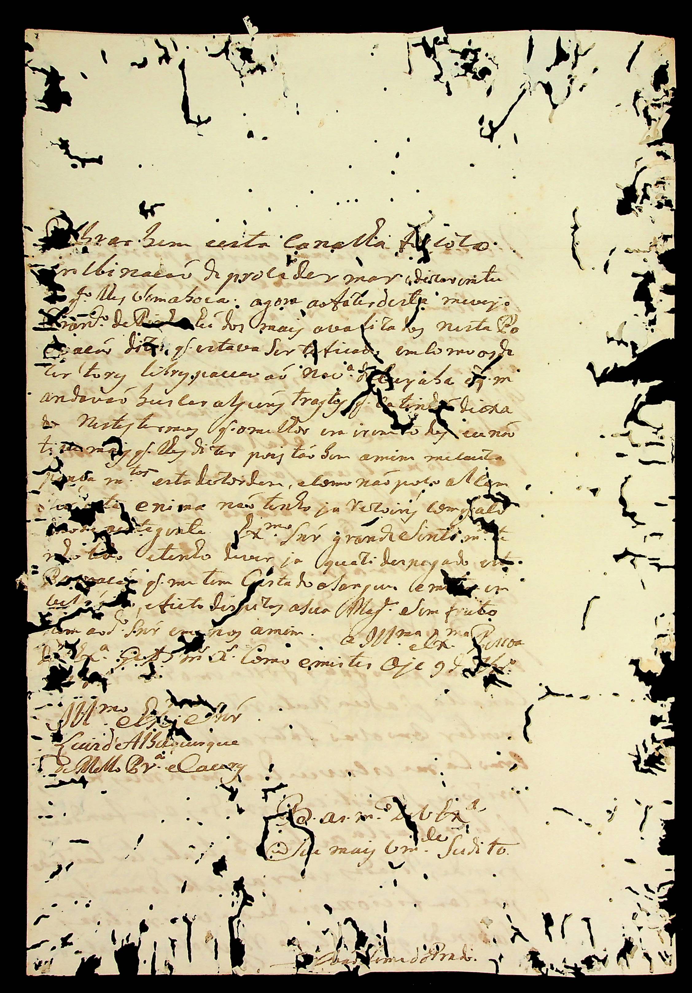 CARTA do [Capitão-mor das Conquistas] João Leme do Prado ao [Governador e Capitão-General] Luiz de Albuquerque de Mello Pereira e Cáceres.