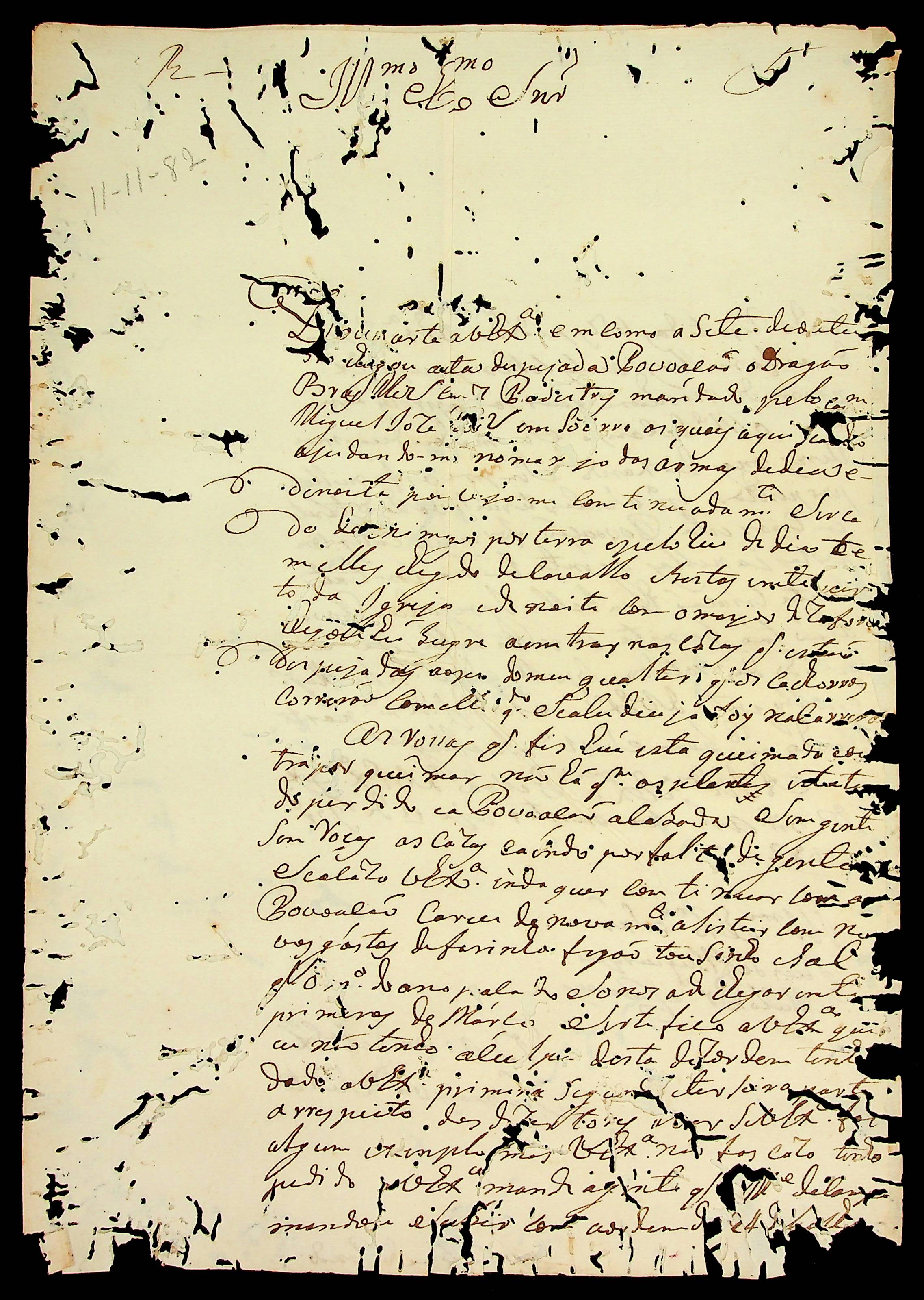 CARTA do [Capitão-mor das Conquistas] João Leme do Prado ao [Governador e Capitão-General da Capitania de Mato Grosso] Luiz de Albuquerque de Mello Pereira e Cáceres.