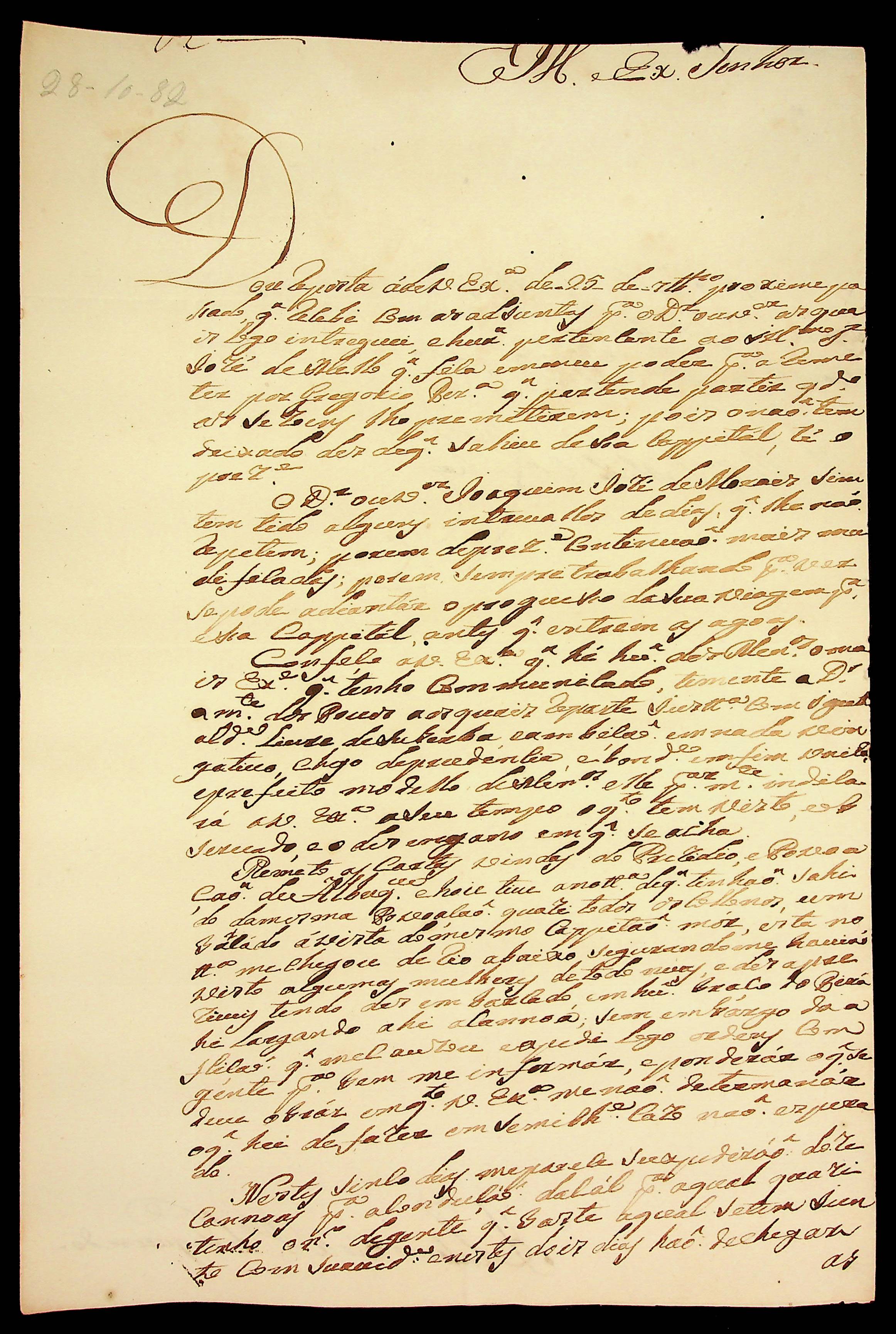 CARTA do [Mestre de Campo] Antônio José Pinto de Figueiredo ao [Governador e Capitão-General da Capitania de Mato Grosso] Luiz de Albuquerque de Mello Pereira e Cáceres.