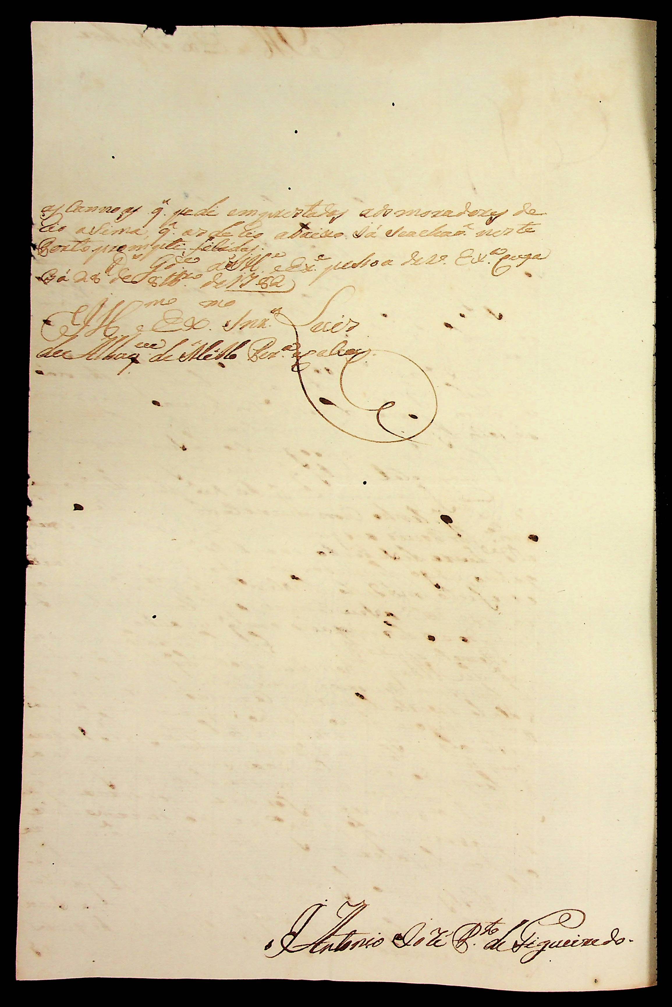 CARTA do [Mestre de Campo] Antônio José Pinto de Figueiredo ao [Governador e Capitão-General da Capitania de Mato Grosso] Luiz de Albuquerque de Mello Pereira e Cáceres.