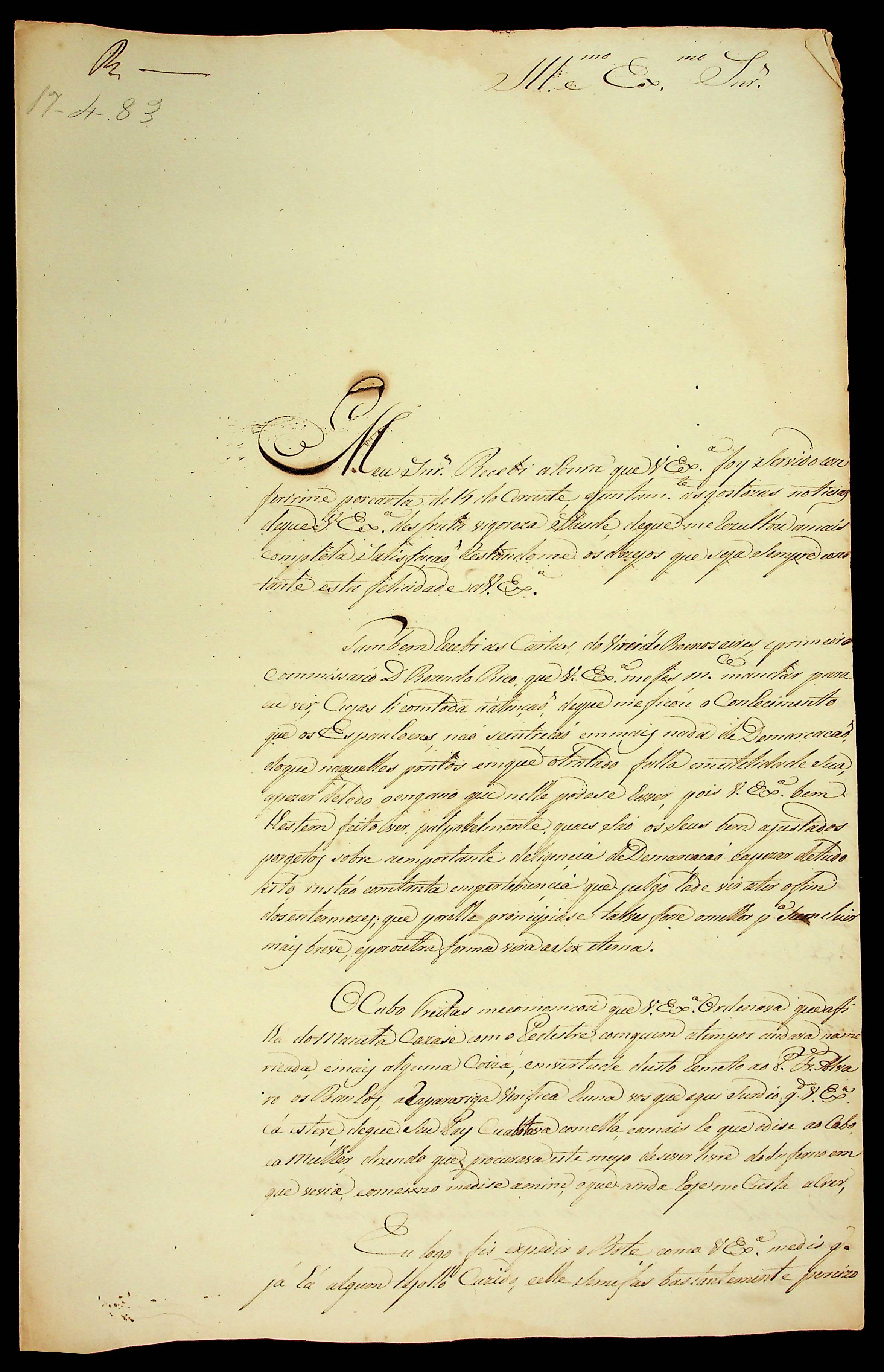 CARTA de Joaquim José Ferreira ao [Governador e Capitão-General da Capitania de Mato Grosso] Luiz de Albuquerque de Mello Pereira e Cáceres.