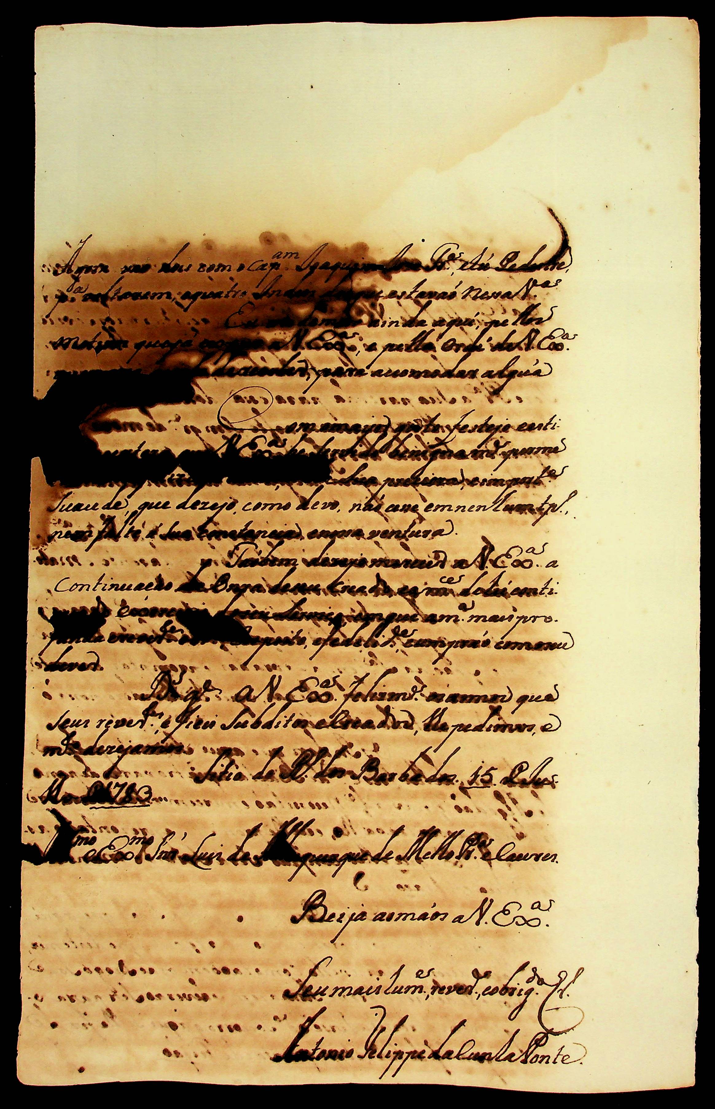 CARTA do [Tenente-Coronel] Antônio Felipe da Cunha Ponte ao Governador e Capitão-General da Capitania de Mato Grosso Luiz de Albuquerque de Mello Pereira e Cáceres.