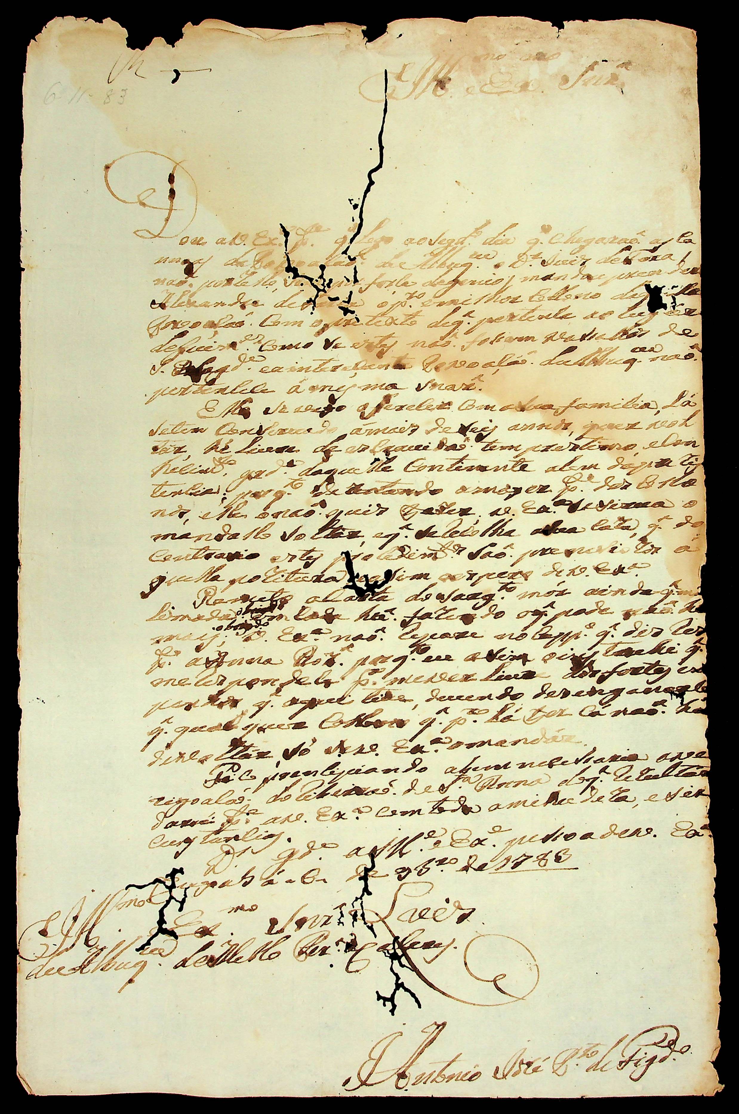 CARTA do [Mestre de Campo] Antônio José Pinto de Figueiredo ao [Governador e Capitão-General da Capitania de Mato Grosso] Luiz de Albuquerque de Mello Pereira e Cáceres.