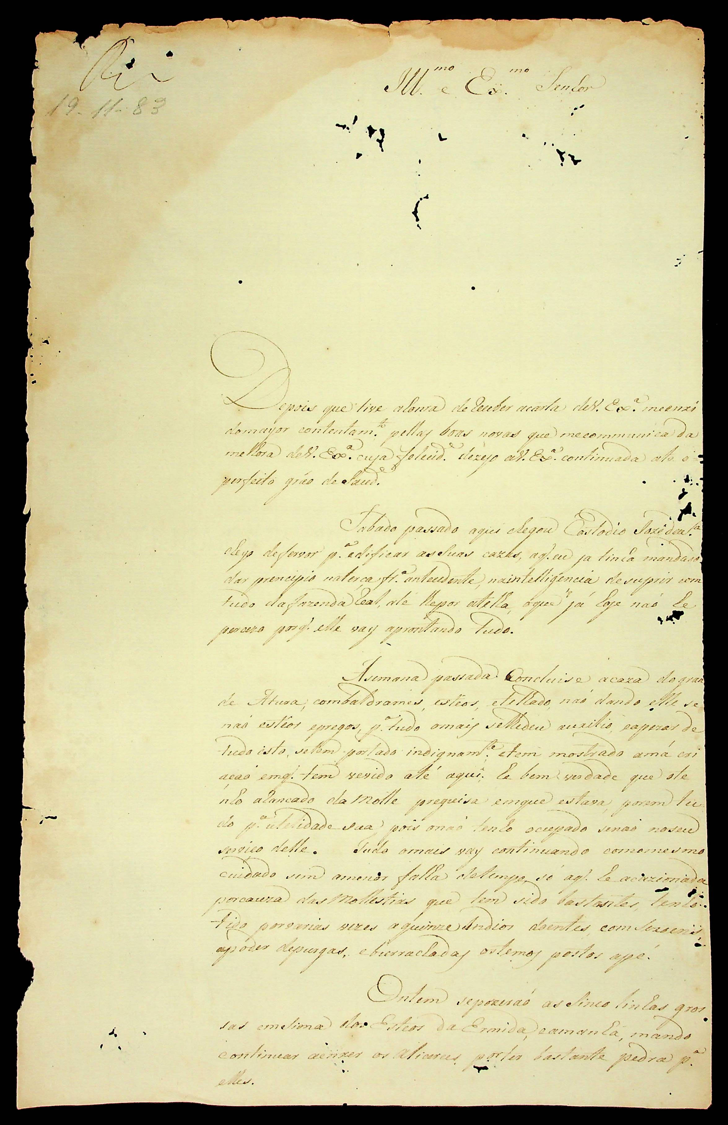 CARTA do [Capitão Engenheiro das Demarcações] Joaquim José Ferreira ao [Governador e Capitão-General da Capitania de Mato Grosso] Luiz de Albuquerque de Mello Pereira e Cáceres.
