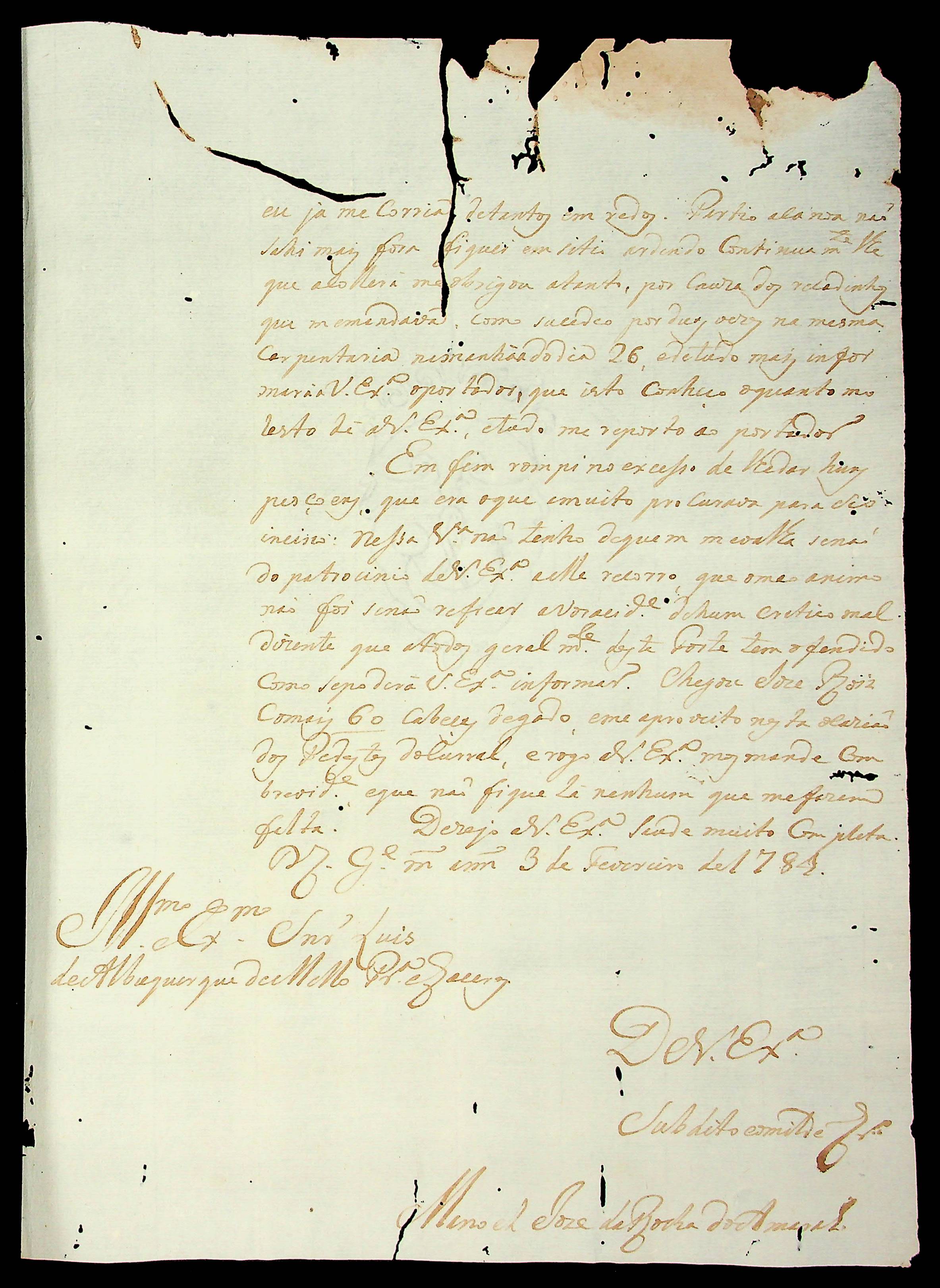 CARTA do [Tenente] Manoel José da Rocha do Amaral ao [Governador e Capitão-General da Capitania de Mato Grosso] Luiz de Albuquerque de Mello Pereira e Cáceres.