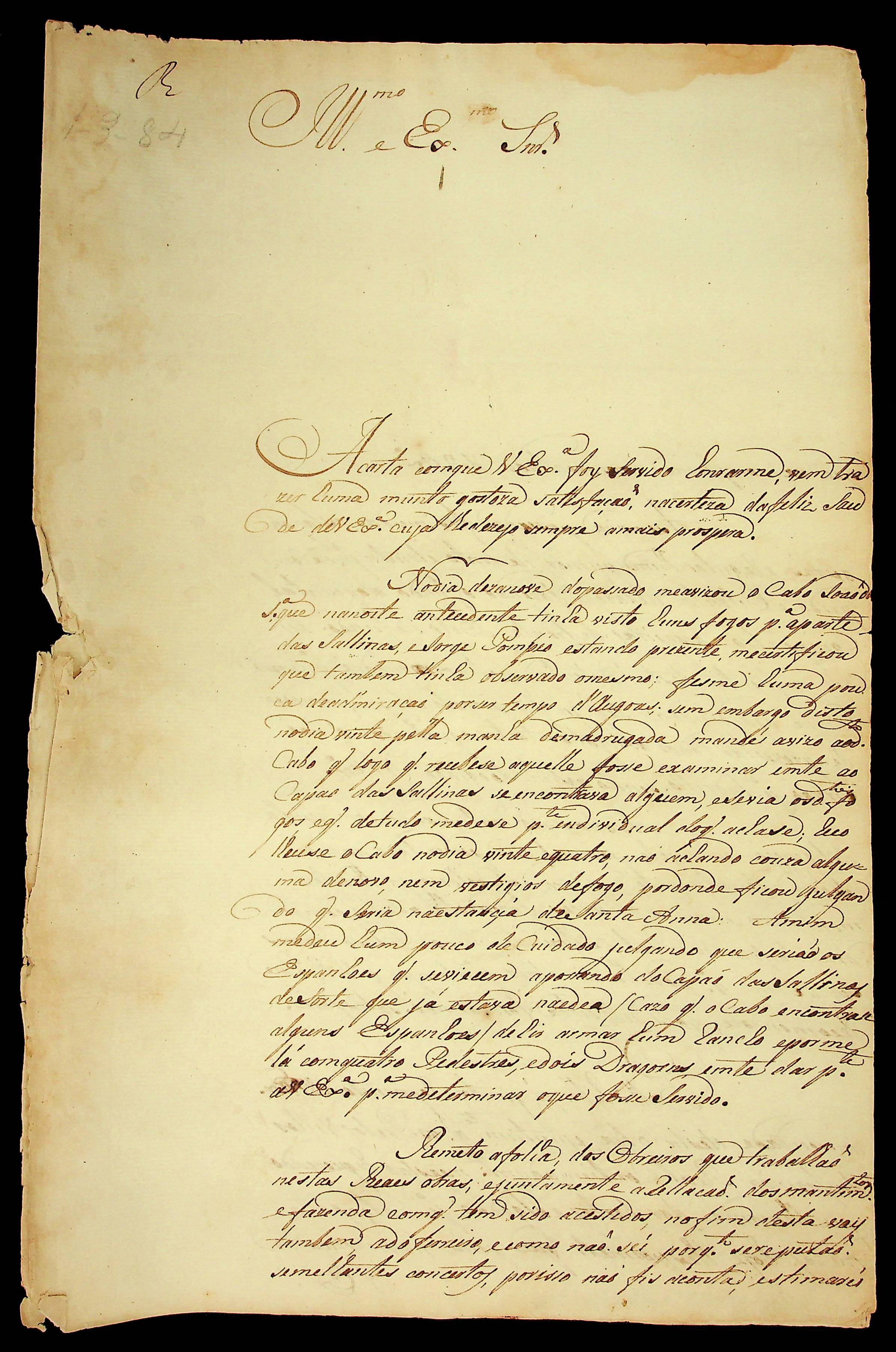 CARTA do [Capitão] Joaquim José Ferreira ao [Governador e Capitão-General da Capitania de Mato Grosso] Luiz de Albuquerque de Mello Pereira e Cáceres.