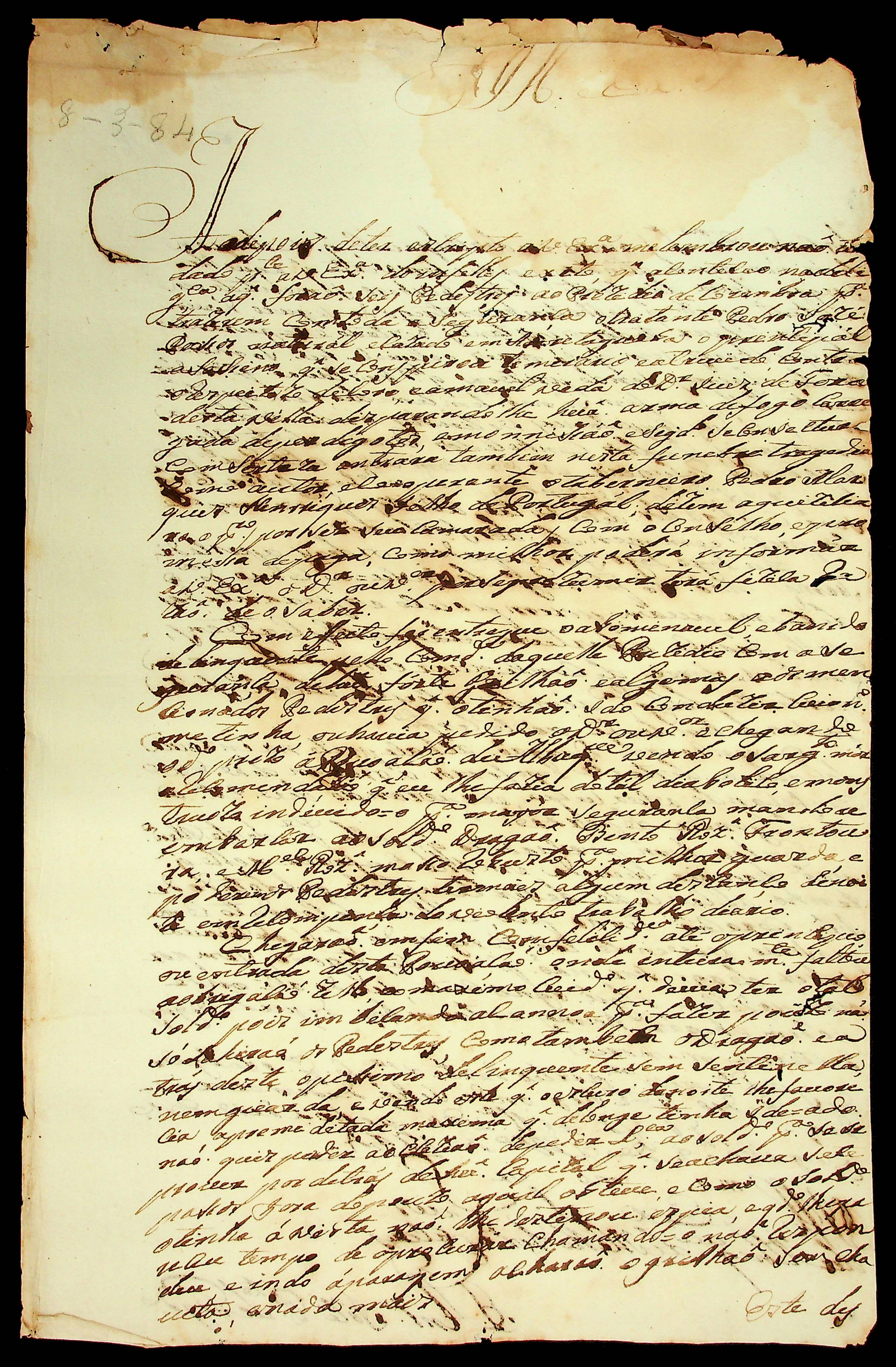 CARTA do [Mestre de Campo] Antônio José Pinto de Figueiredo ao [Governador e Capitão-General da Capitania de Mato Grosso] Luiz de Albuquerque de Mello Pereira e Cáceres.