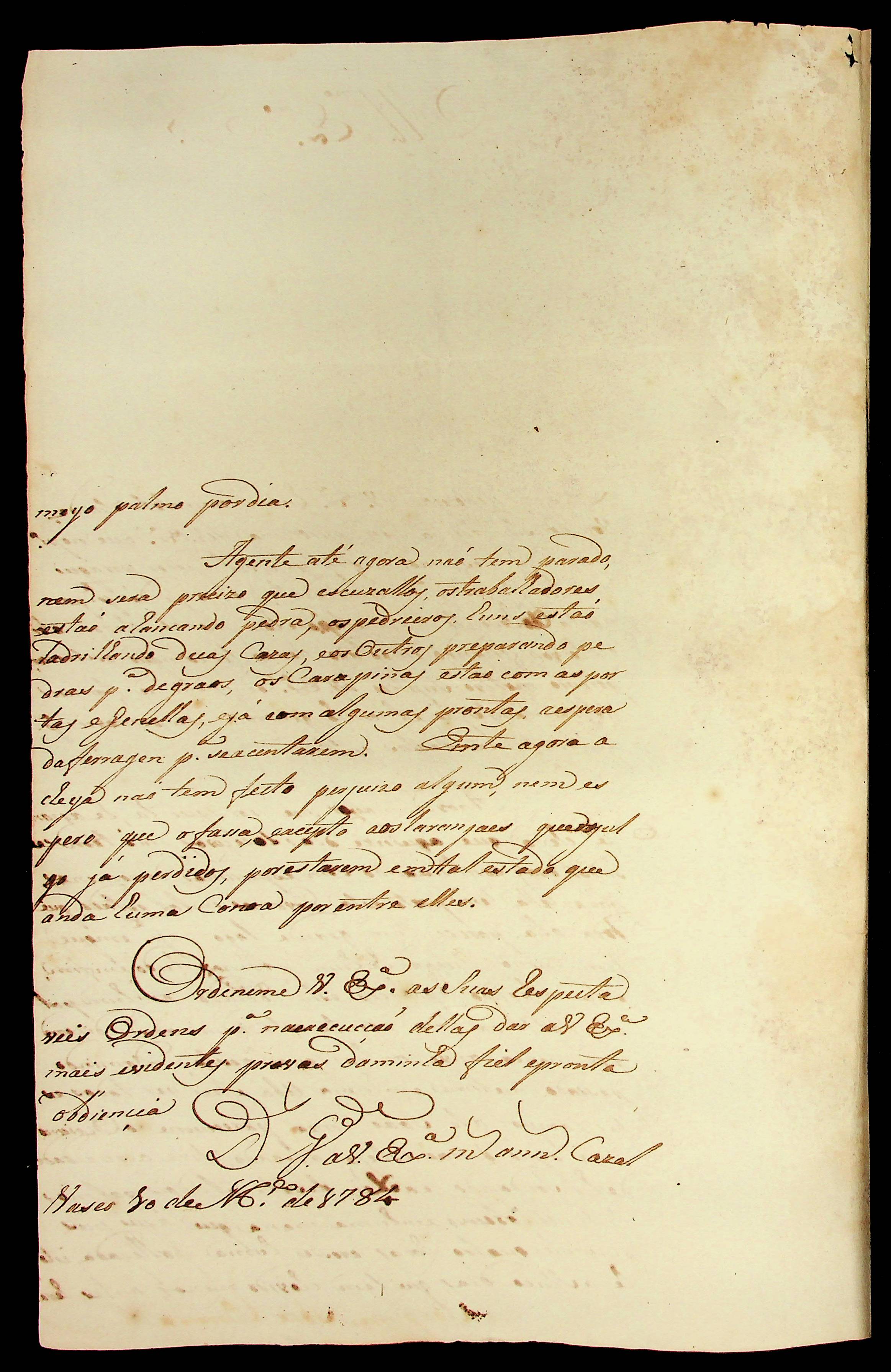 CARTA do [Capitão] Joaquim José Ferreira ao [Governador e Capitão-General da Capitania de Mato Grosso] Luiz de Albuquerque de Mello Pereira e Cáceres.