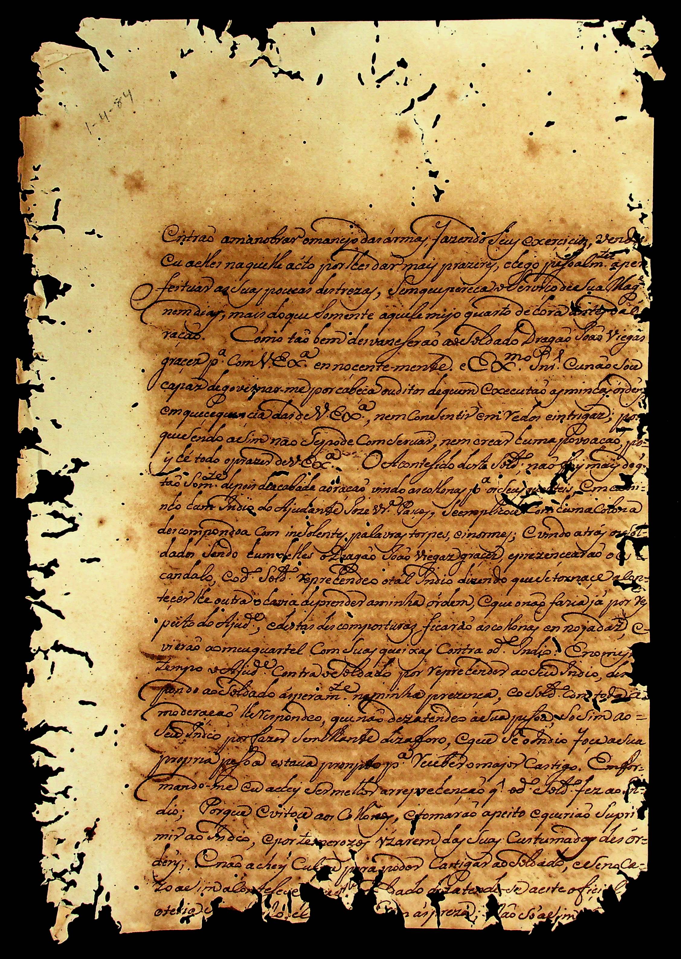 CARTA enviada ao [Governador e Capitão-General da Capitania de Mato Grosso] Luiz de Albuquerque de Mello Pereira e Cáceres.