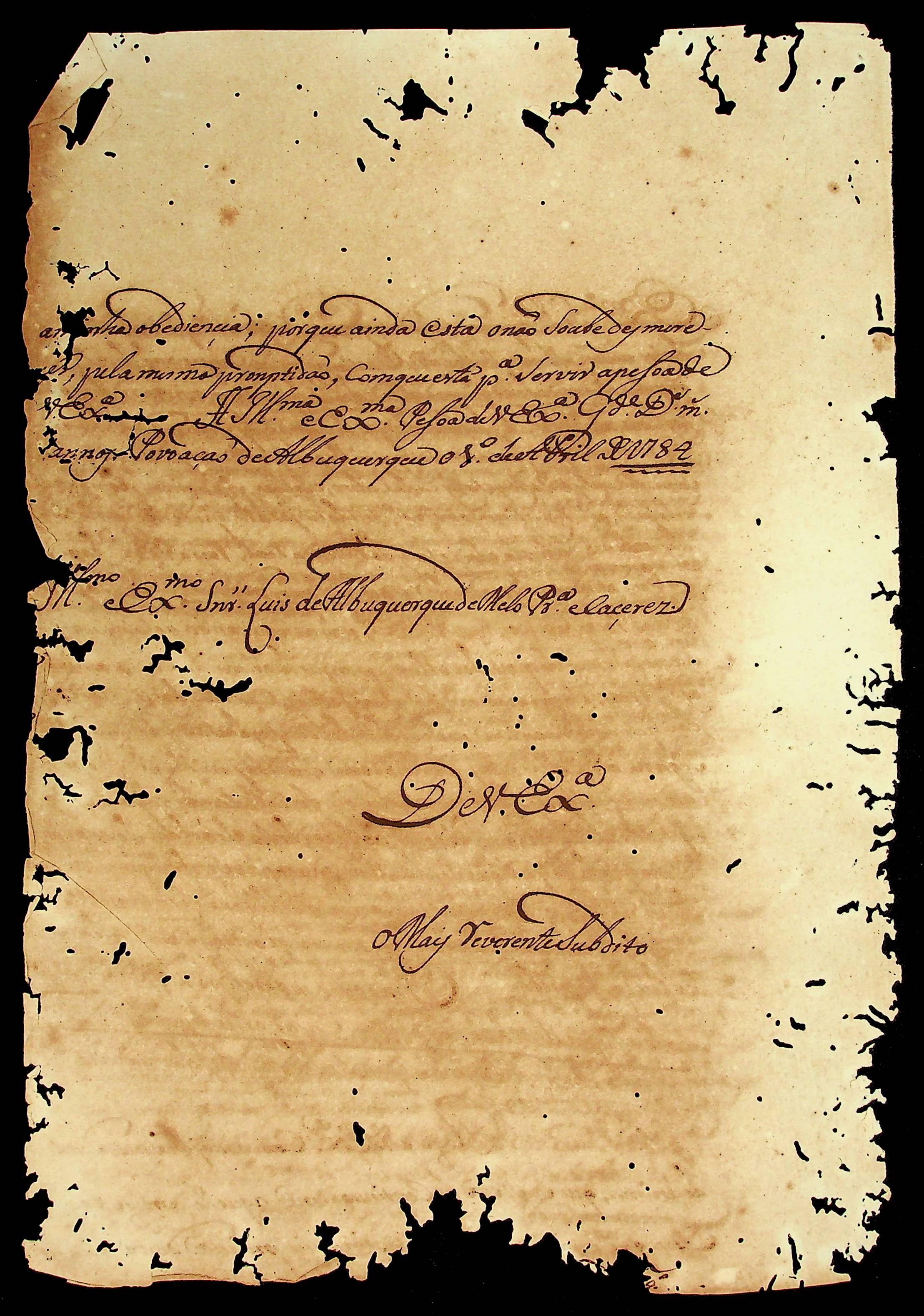 CARTA enviada ao [Governador e Capitão-General da Capitania de Mato Grosso] Luiz de Albuquerque de Mello Pereira e Cáceres.