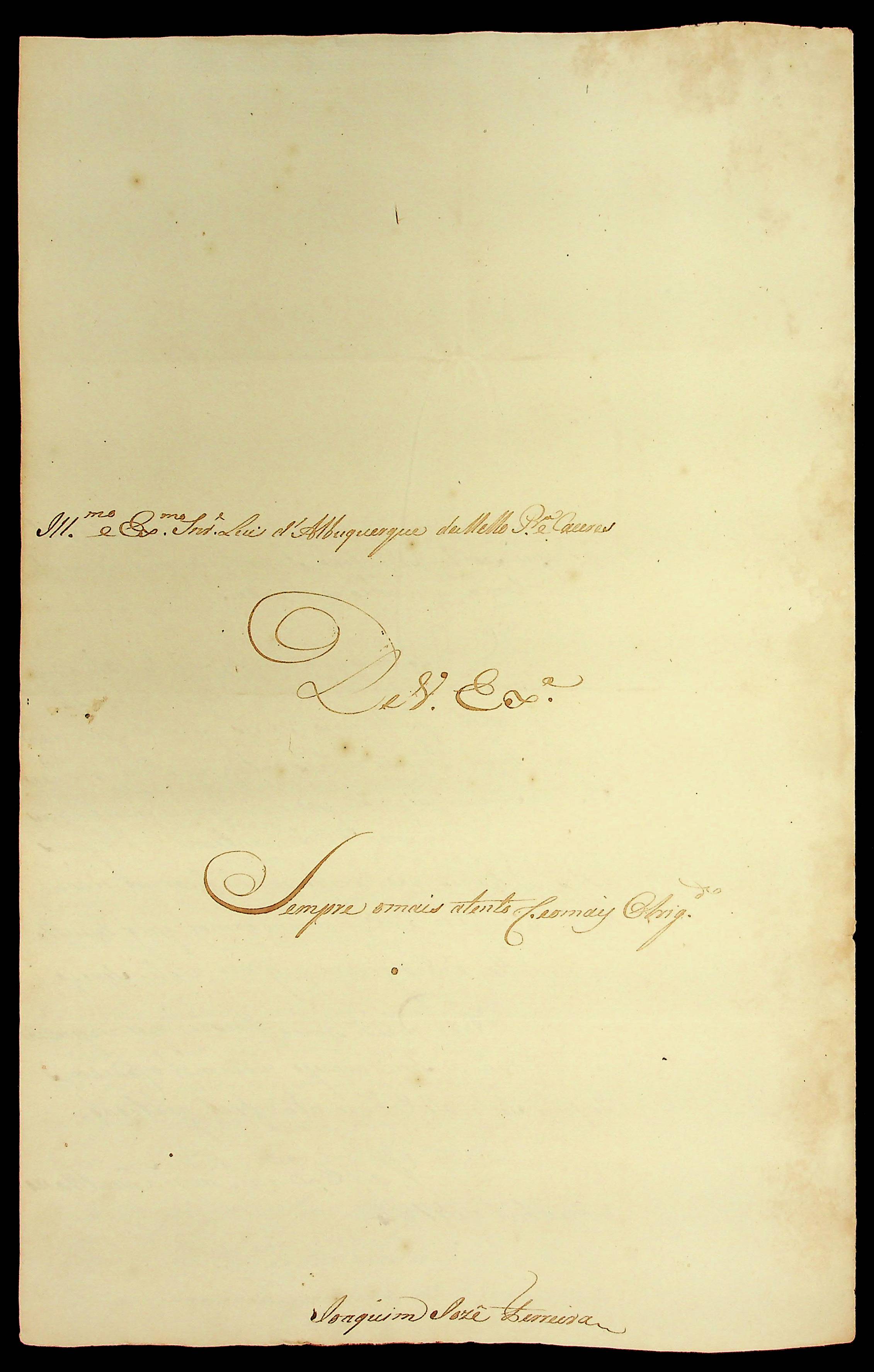 CARTA do [Capitão] Joaquim José Ferreira ao [Governador e Capitão-General da Capitania de Mato Grosso] Luiz de Albuquerque de Mello Pereira e Cáceres.