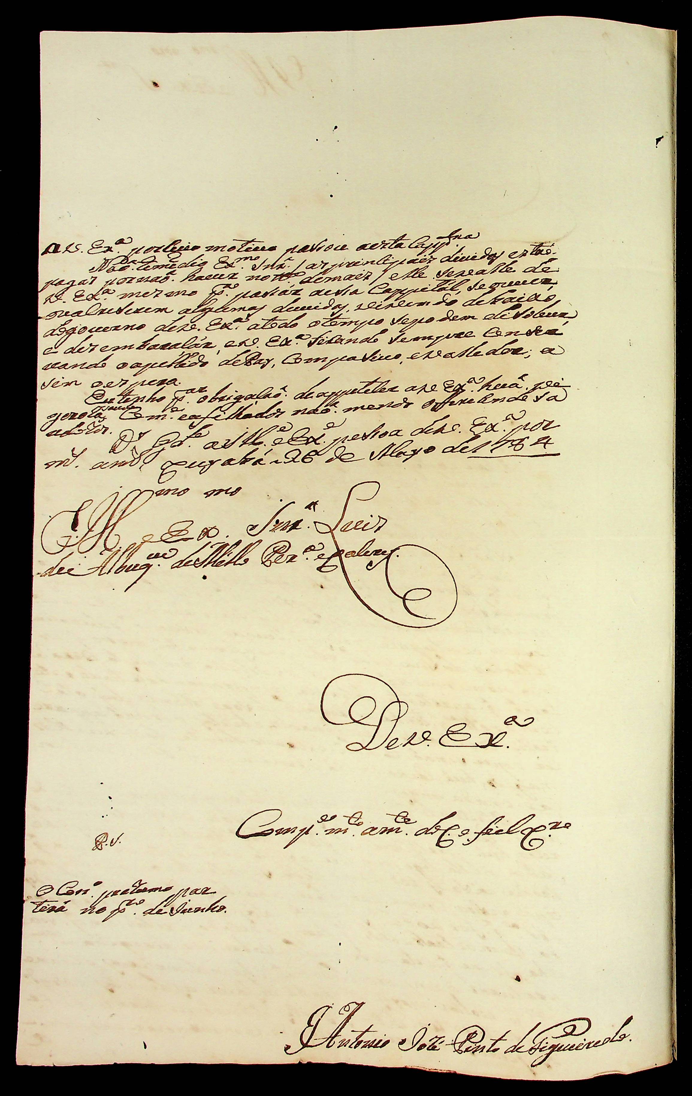 CARTA do [Mestre de Campo] Antônio José Pinto de Figueiredo ao [Governador e Capitão-General da Capitania de Mato Grosso] Luiz de Albuquerque de Mello Pereira e Cáceres