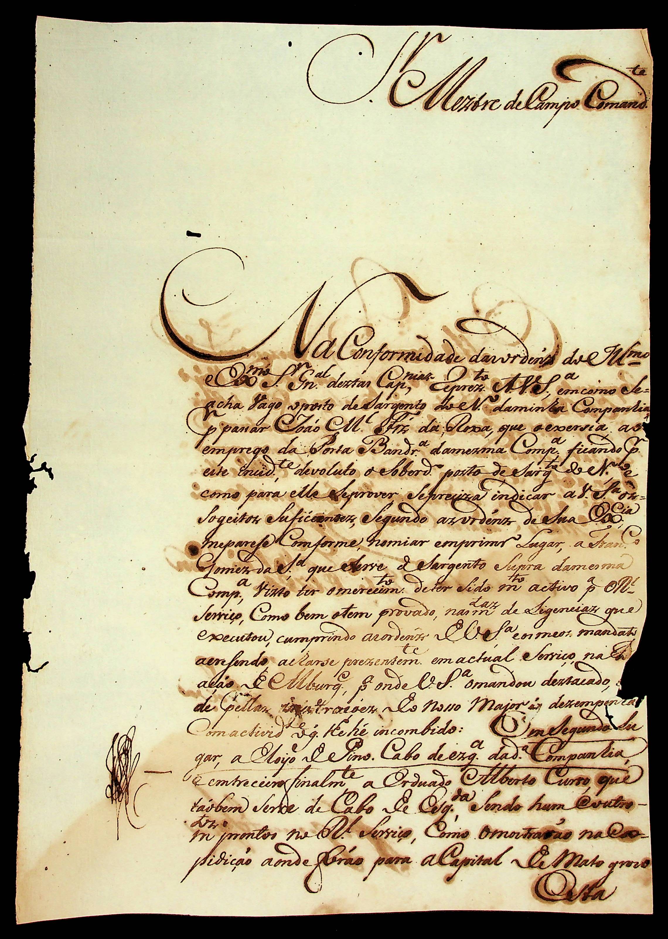 CARTA do Capitão José Gomes da Silva ao Mestre de Campo e Comandante.