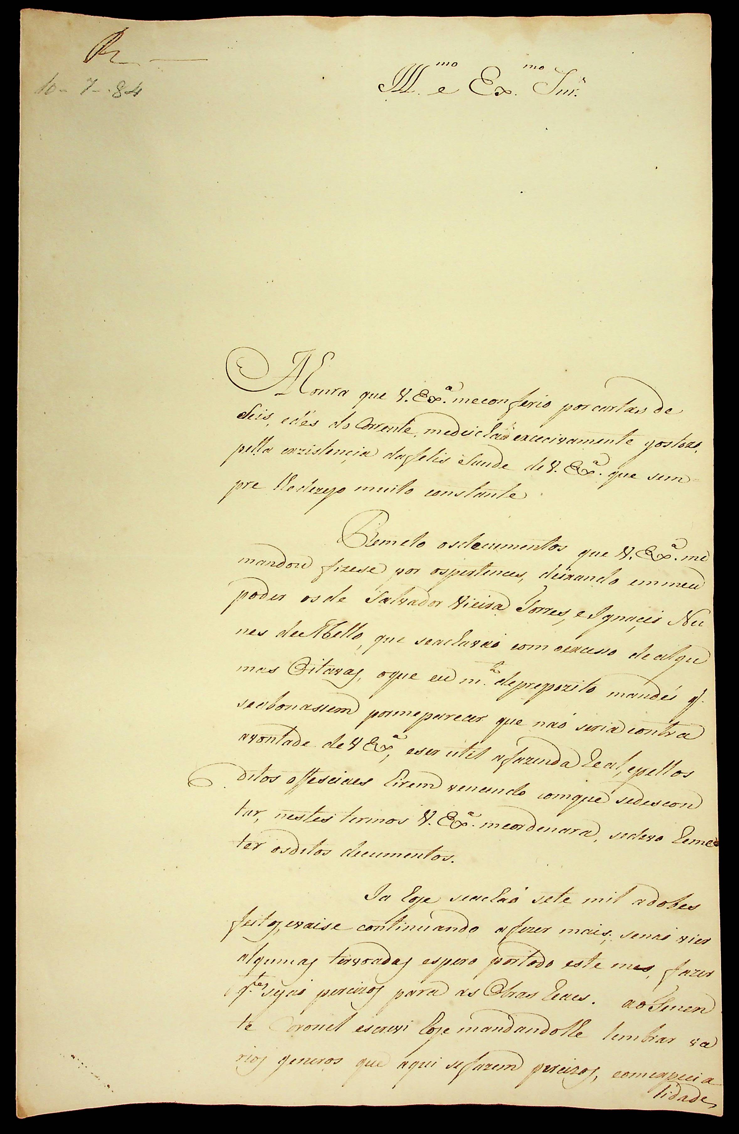 CARTA do [Capitão] Joaquim José Ferreira ao [Governador e Capitão-General da Capitania de Mato Grosso] Luiz de Albuquerque de Mello Pereira e Cáceres.