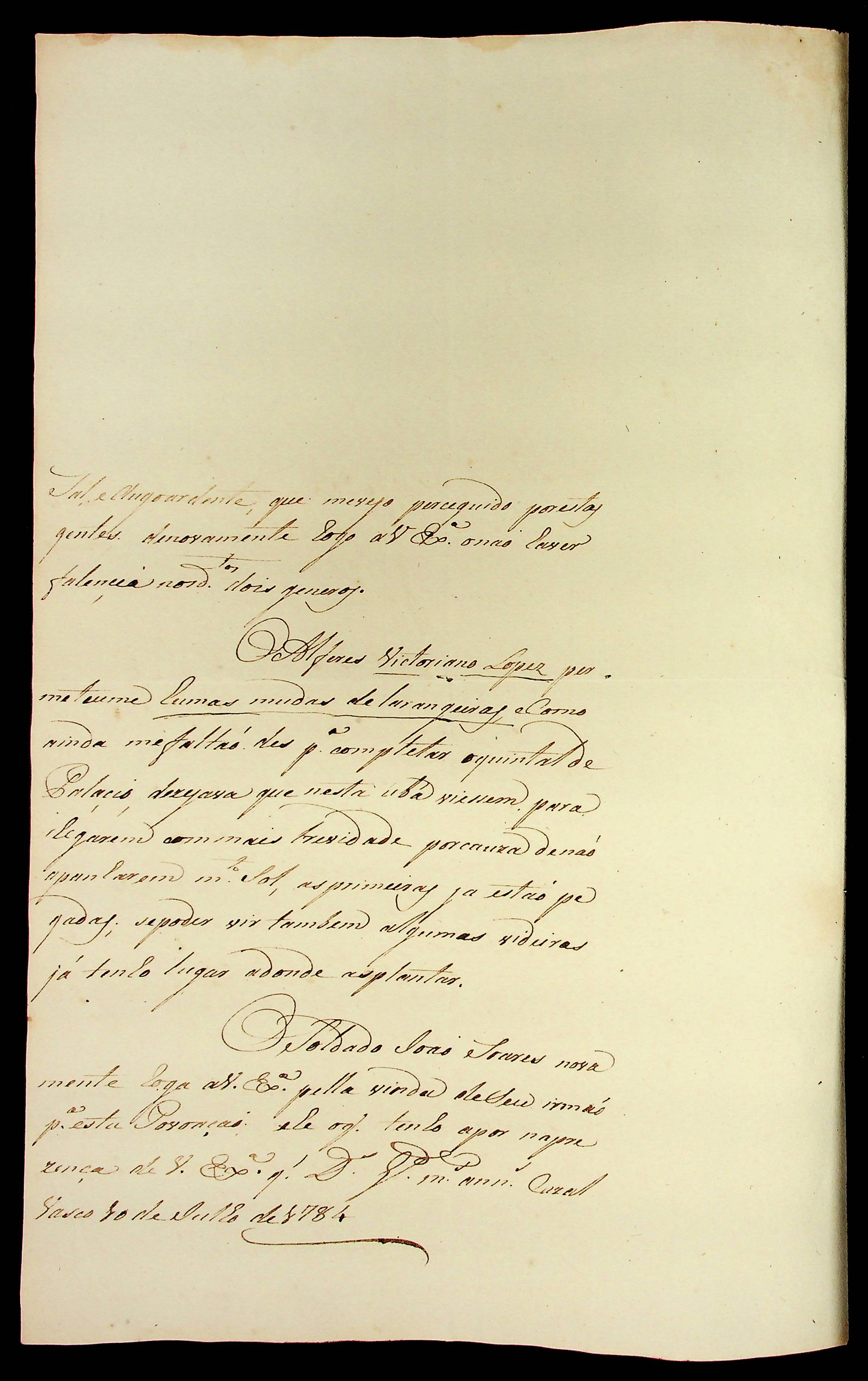 CARTA do [Capitão] Joaquim José Ferreira ao [Governador e Capitão-General da Capitania de Mato Grosso] Luiz de Albuquerque de Mello Pereira e Cáceres.