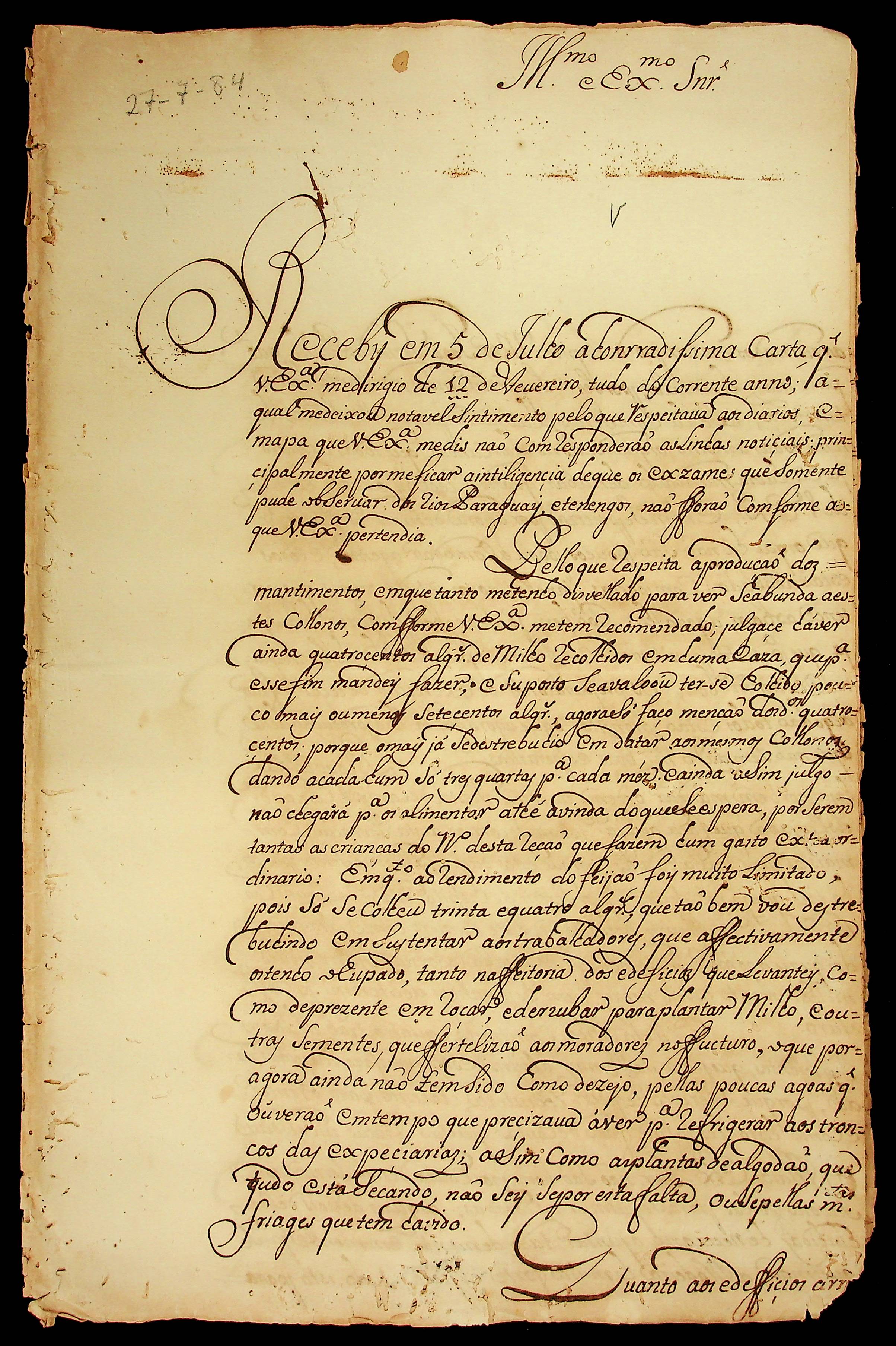 CARTA do [Comandante] José Antônio Pinto de Figueiredo ao [Governador e Capitão-General da Capitania de Mato Grosso] Luiz de Albuquerque de Mello Pereira e Cáceres.